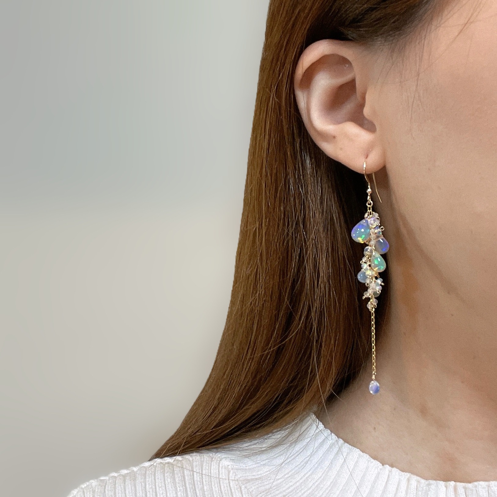 今回はたわわに実る、ぷっくりうるうるとしたドロップ型の天然石が人気のボタニカルシリーズ。その中でも毎回ご好評を頂いておりますオパールを贅沢に使用した新作を発売致します。