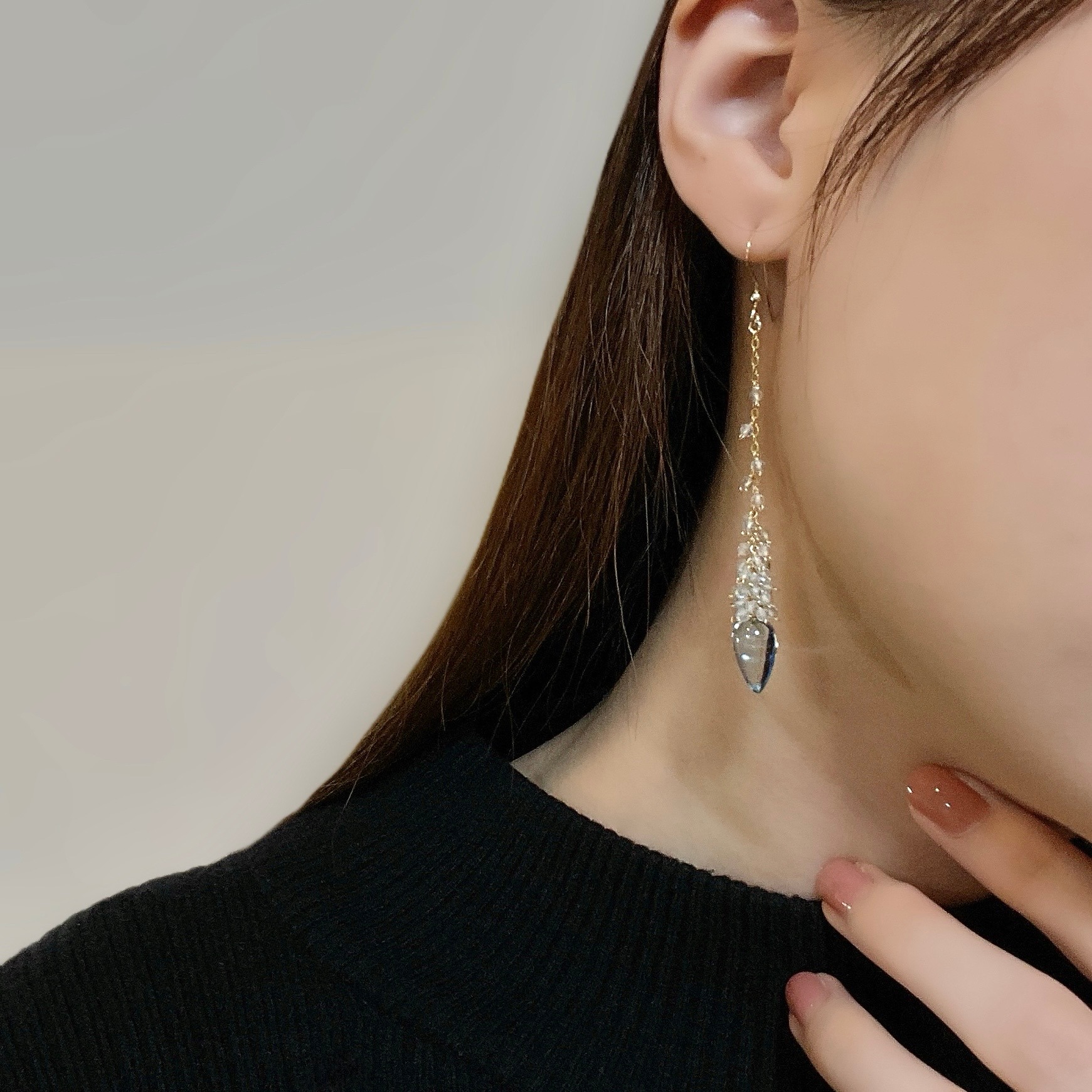 優美な揺れ感を演出するロング丈と、存在感のある大粒のストーンがラグジュアリーな一点♪