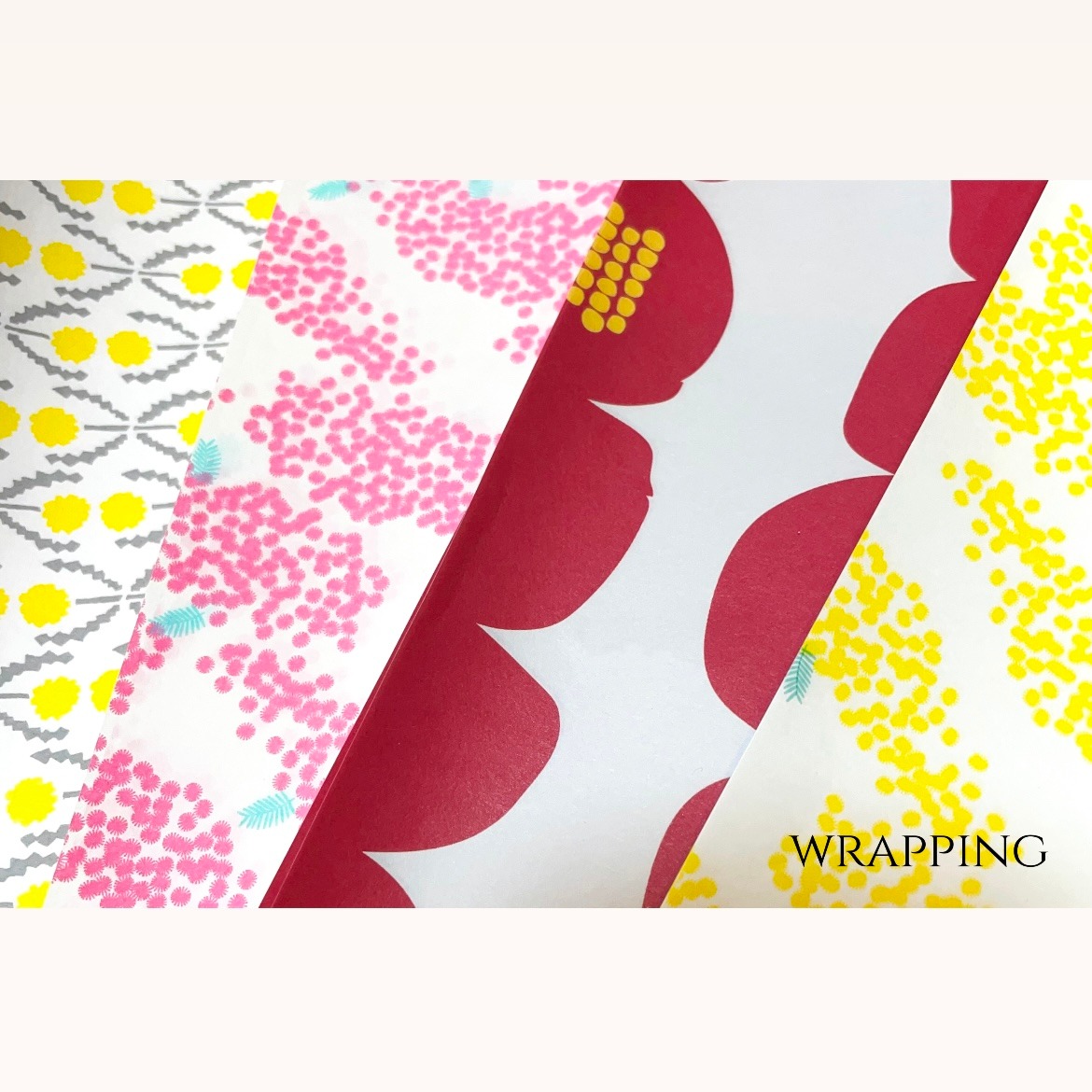 つばきやたんぽぽ、ミモザなど四季を感じる可愛らしいラッピングでお届けいたします♪