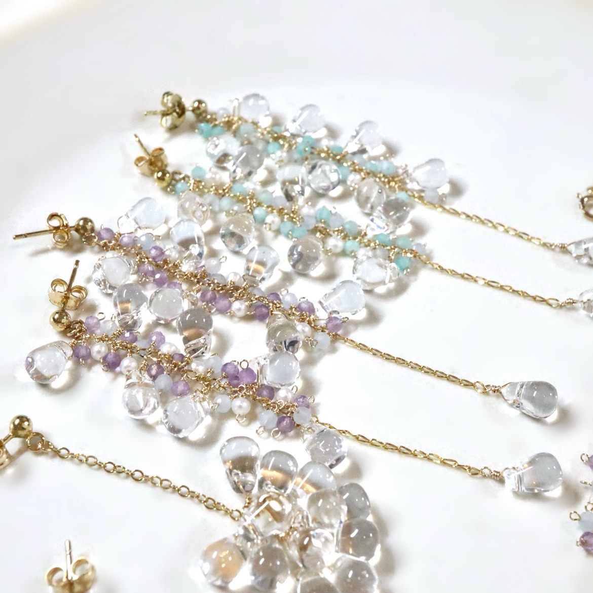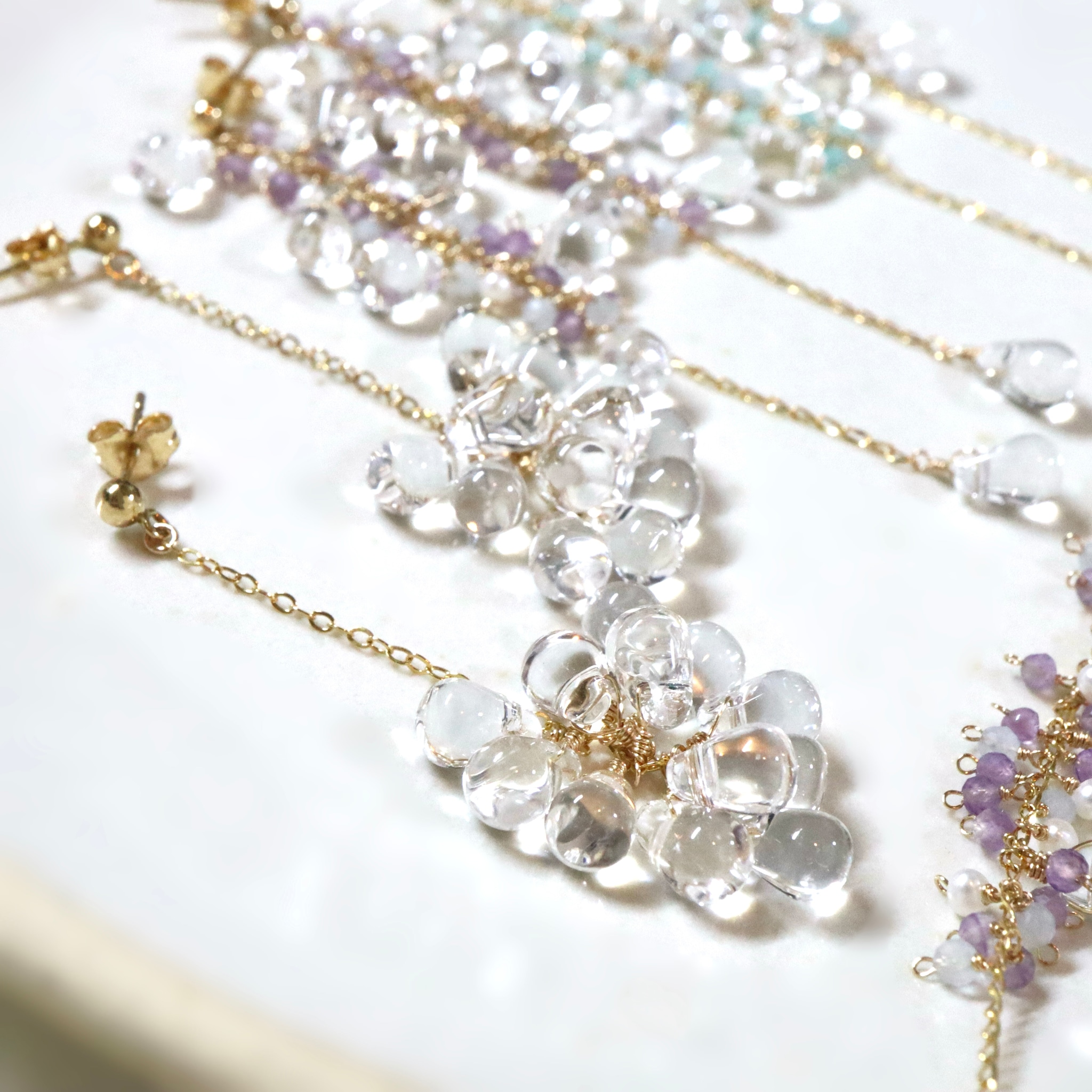 うるうるとしたドロップ型クリスタルを贅沢に連ねた、ボタニカルシリーズ。
