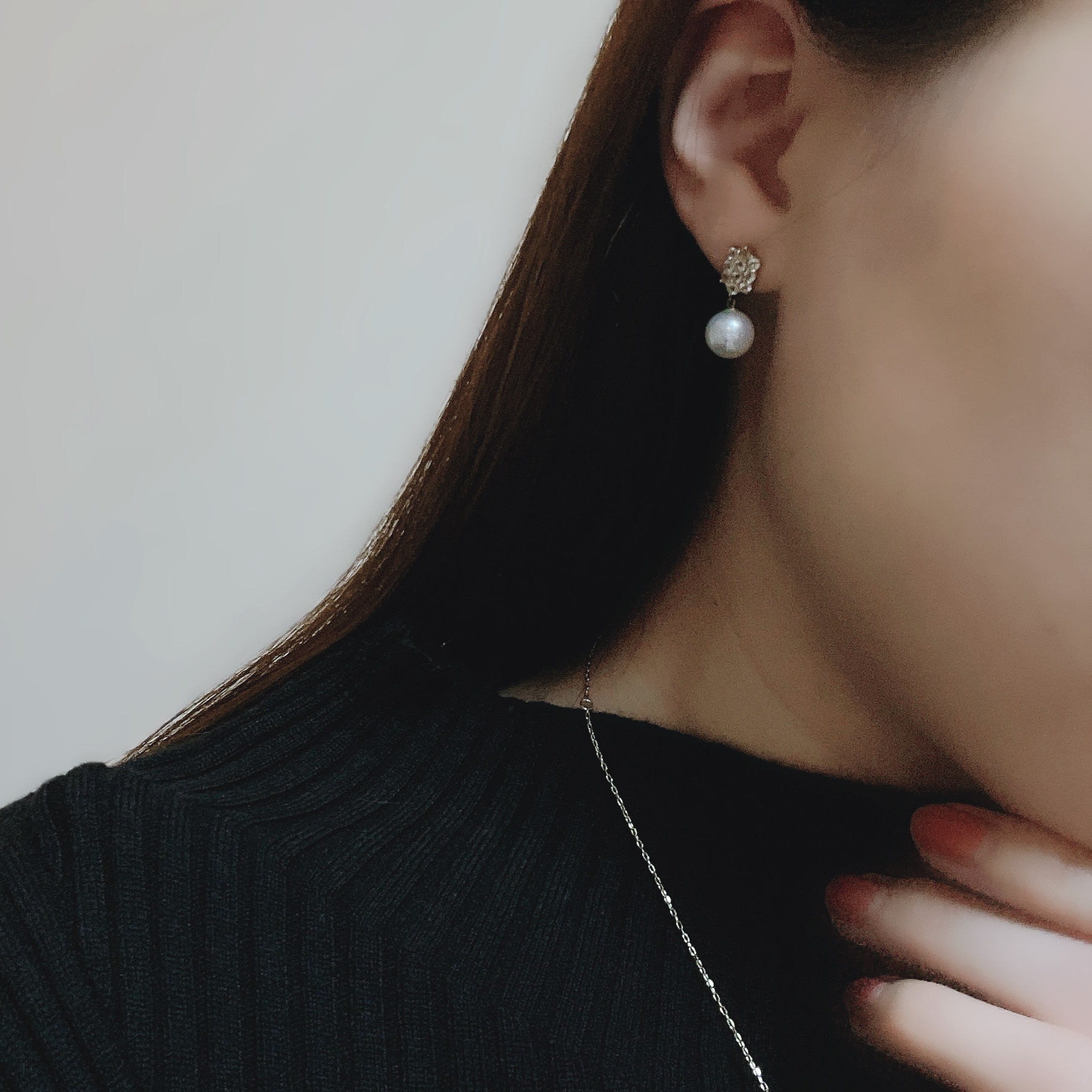 動くたびにボトムのパールが軽やかに揺れ、お顔まわりを明るく照らしてくれます。