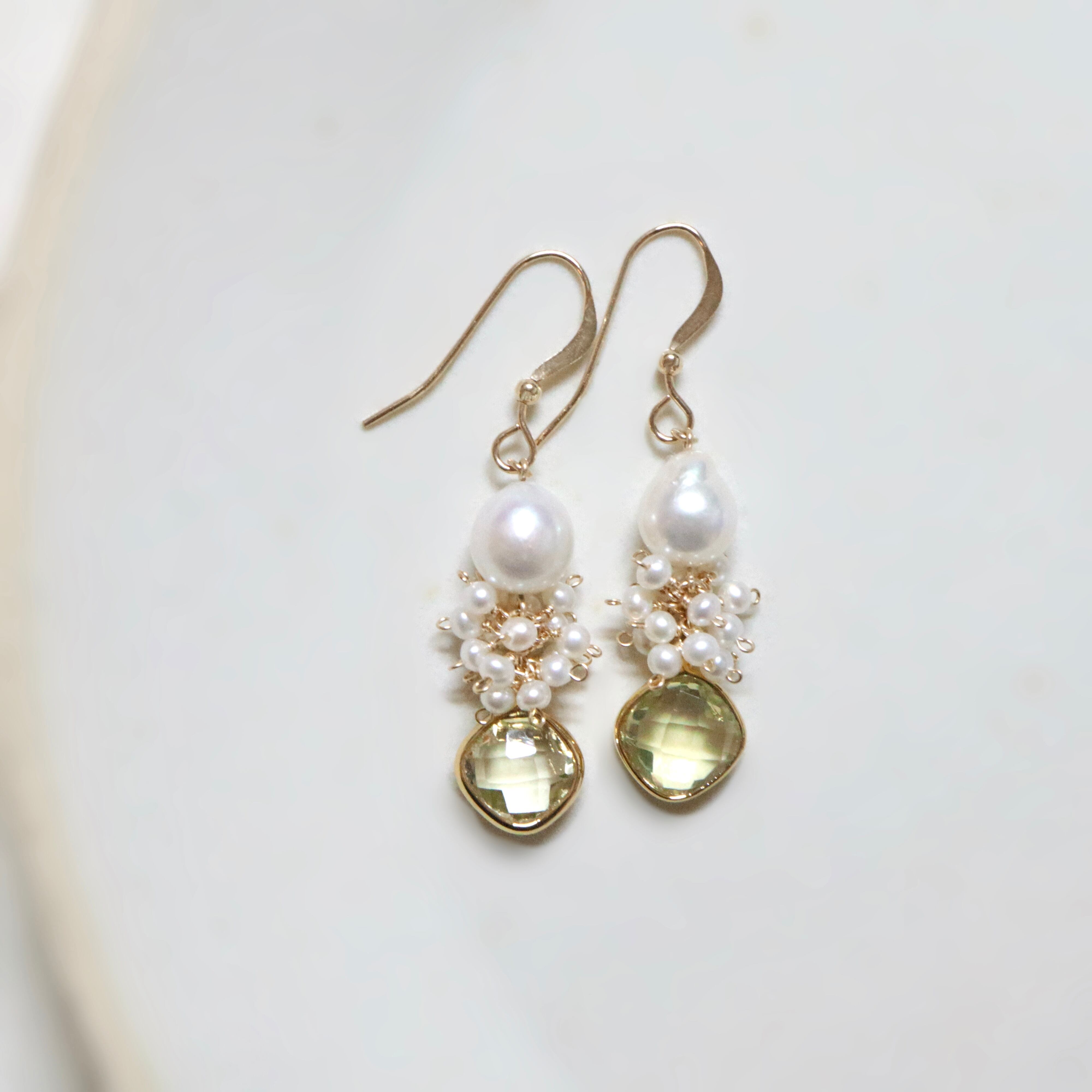 mermaid bloom earrings/White×Lemon quartz