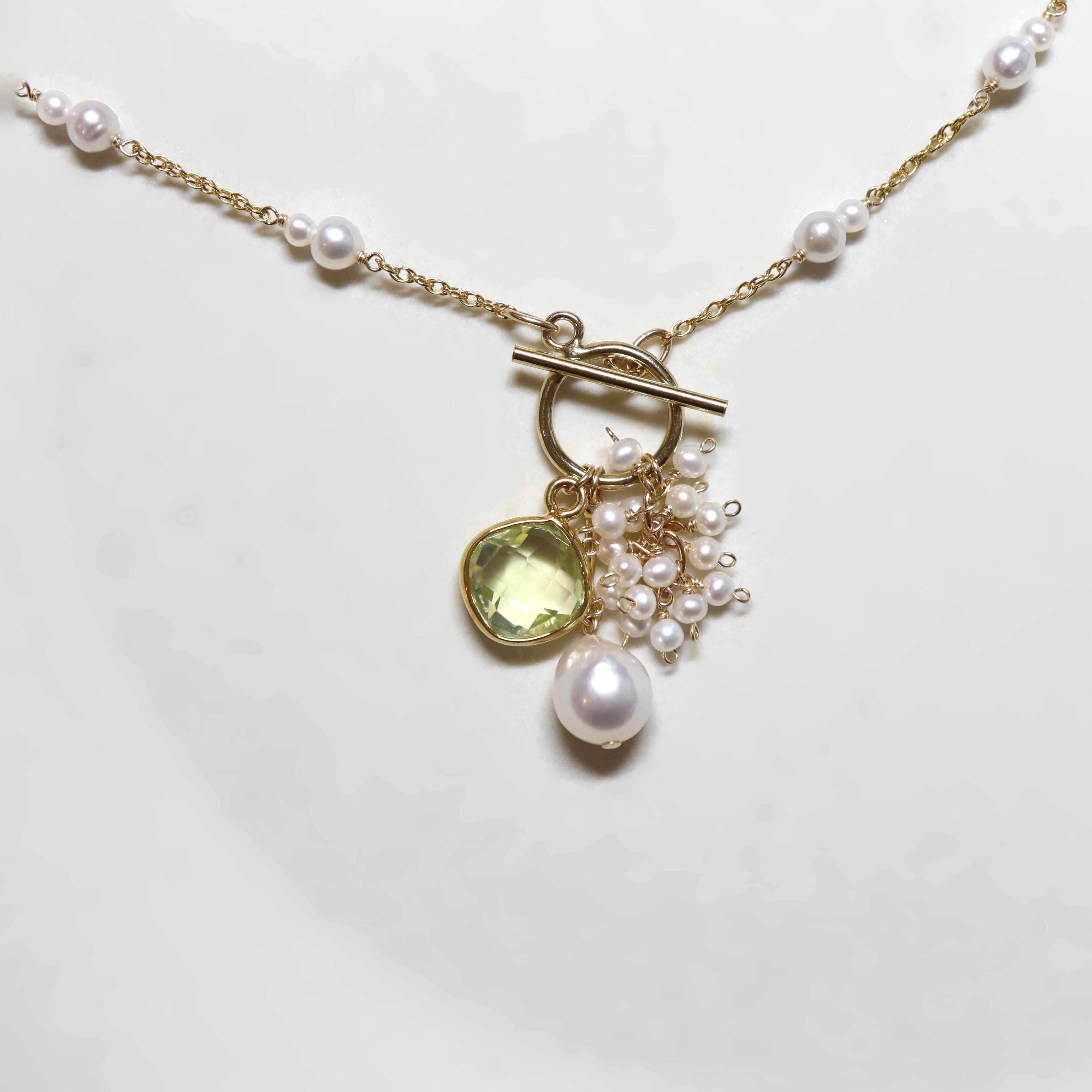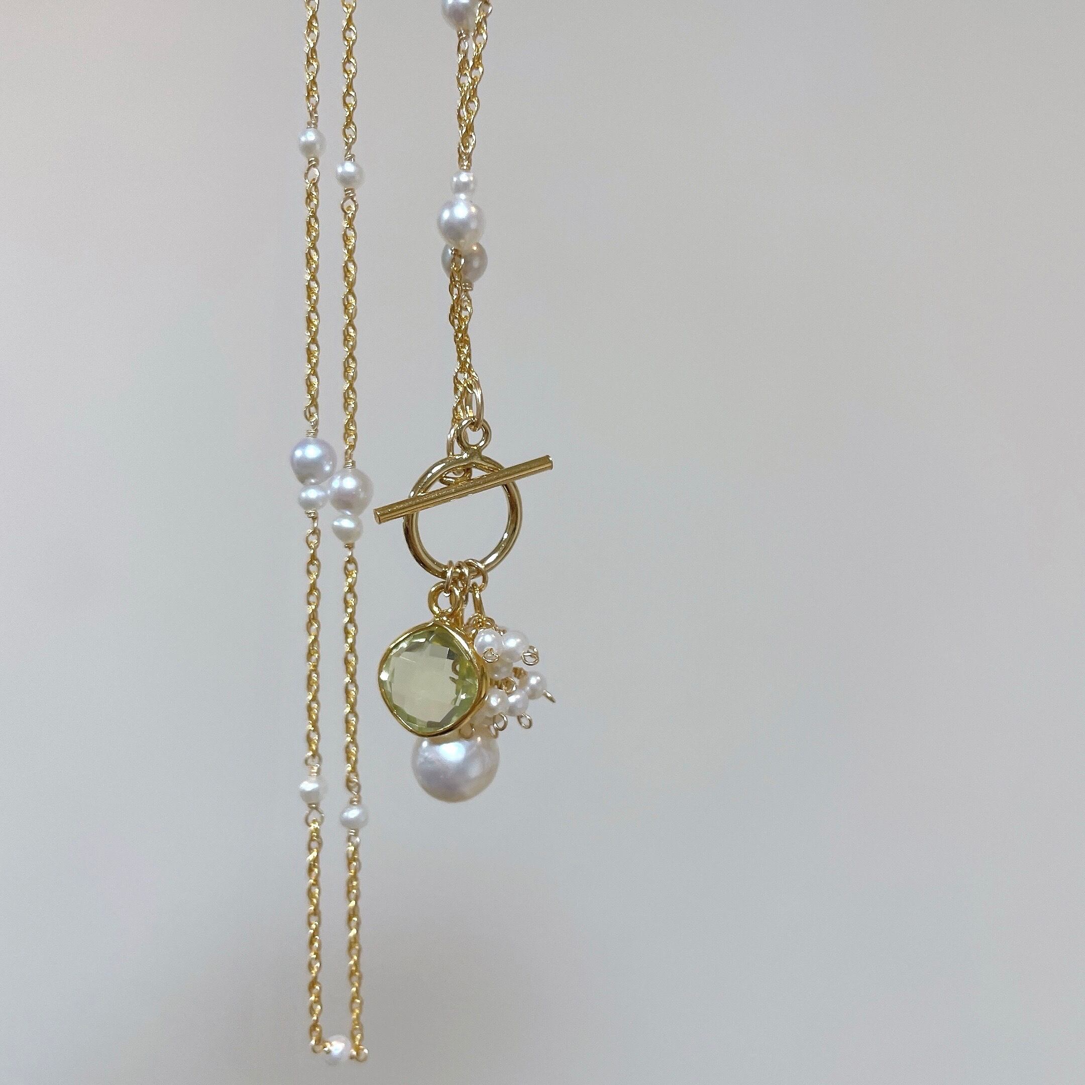 mermaid flow matinee necklace/White×Lemon quartz