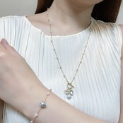 チェーンには、フレッシュな照りを持つサイズの異なる淡水パールをリズムよくあしらい、穏やかな波のような上品なラインに仕立てました。