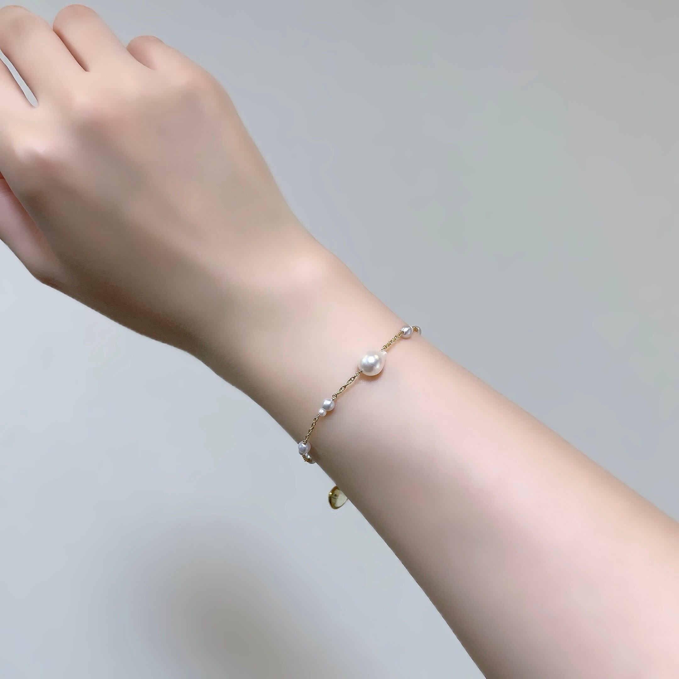 上品なボリューム感をもつホワイトカラーのアコヤパールが印象的なブレスレット。