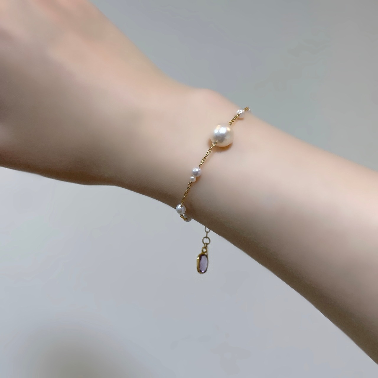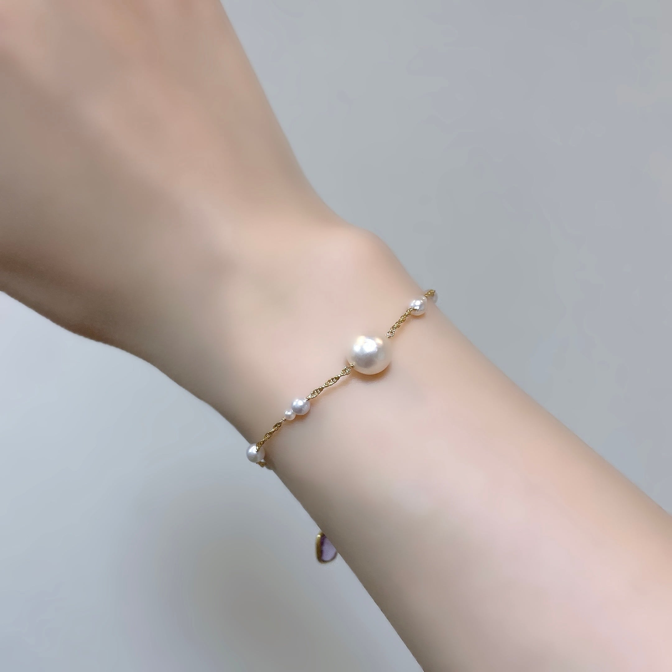 上品なボリューム感をもつホワイトカラーのアコヤパールが印象的なブレスレット。