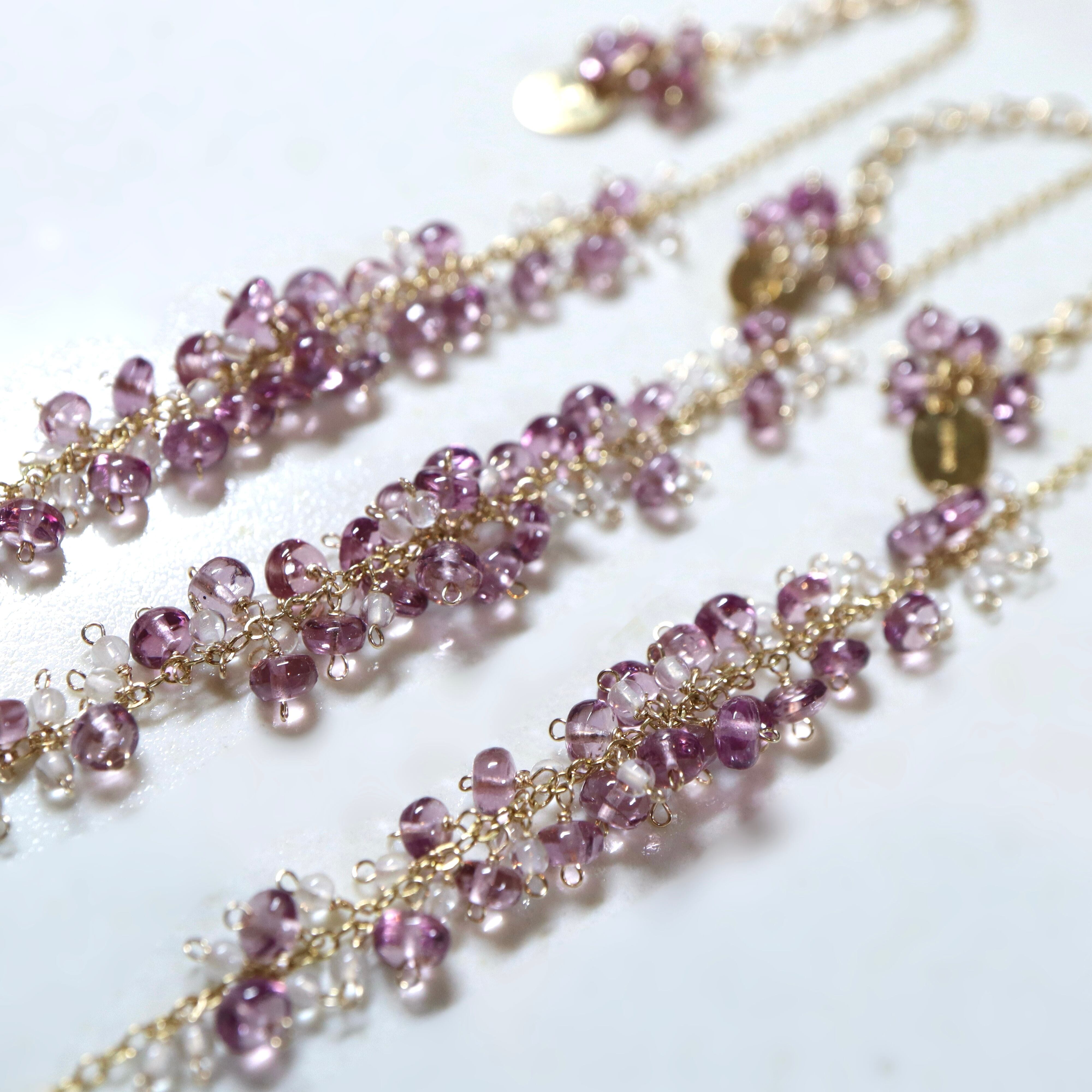 瑞々しい果実を思わせるマラヤガーネットを贅沢にあしらった新作の Luxe Berry series ブレスレット。