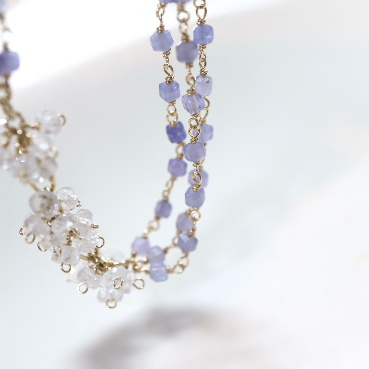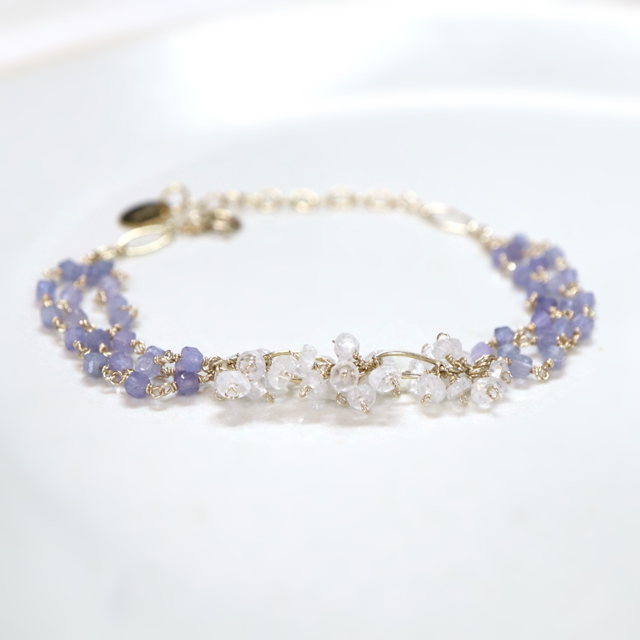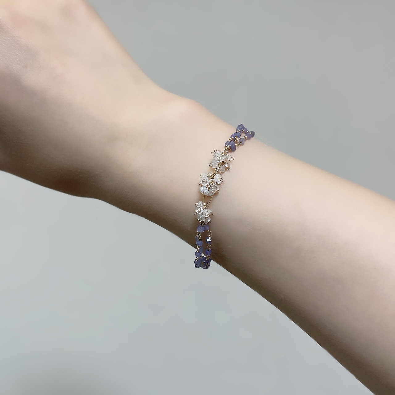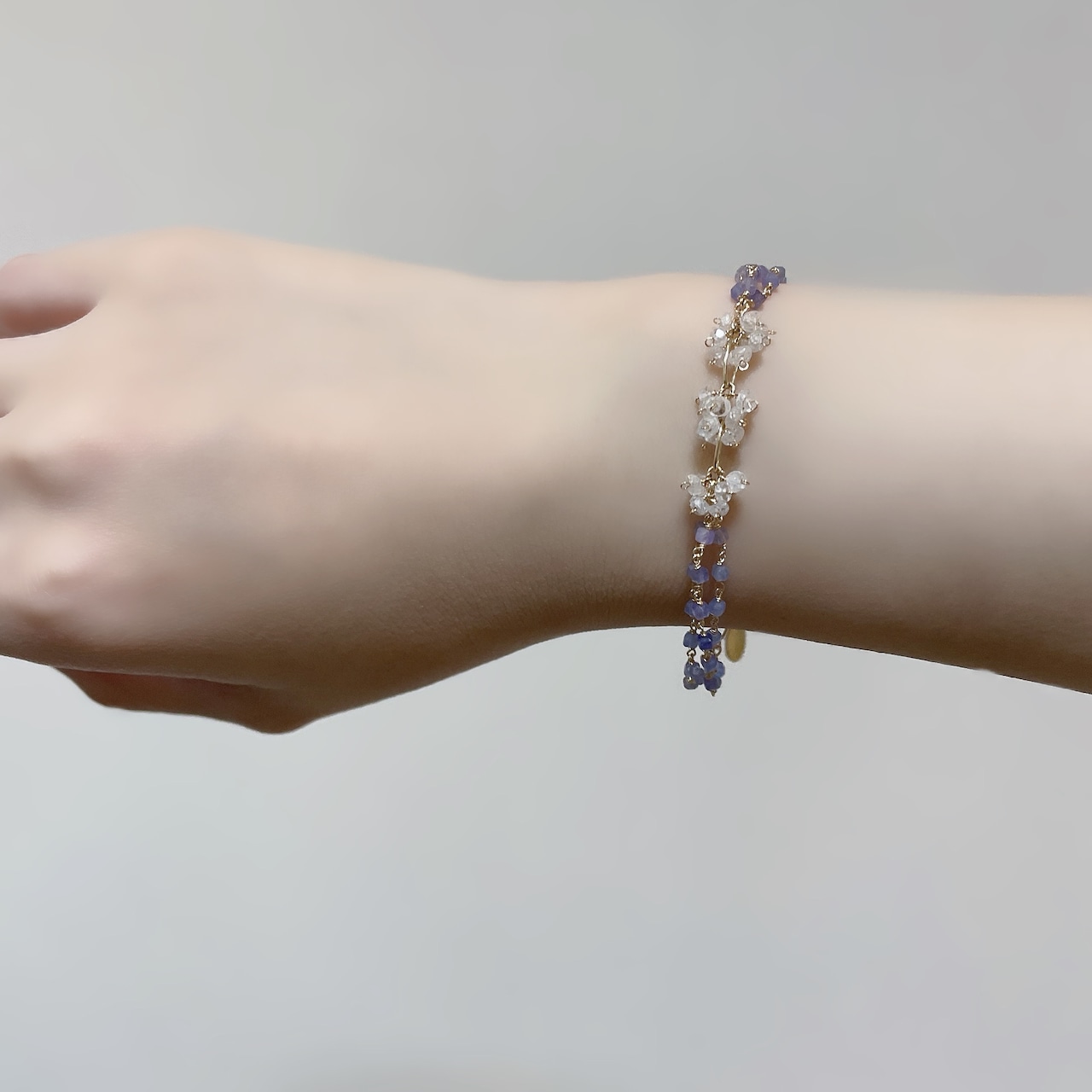 タンザナイトならではの優しく澄んだブルーカラーと、濃淡が織りなすニュアンスが手元にクラシカルな気品を添え、動くたびに艶やかに輝きます。