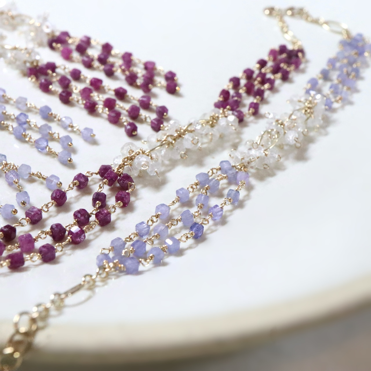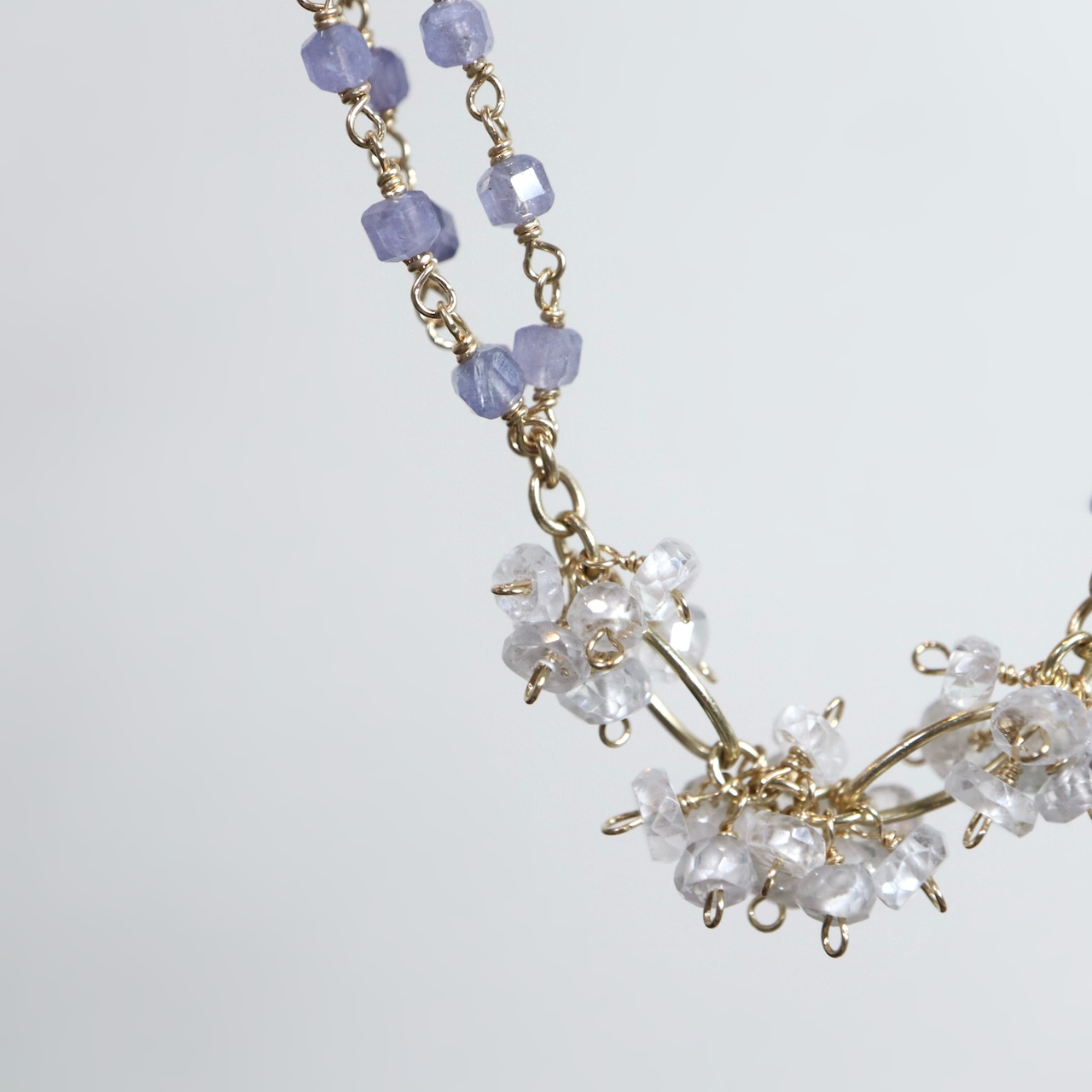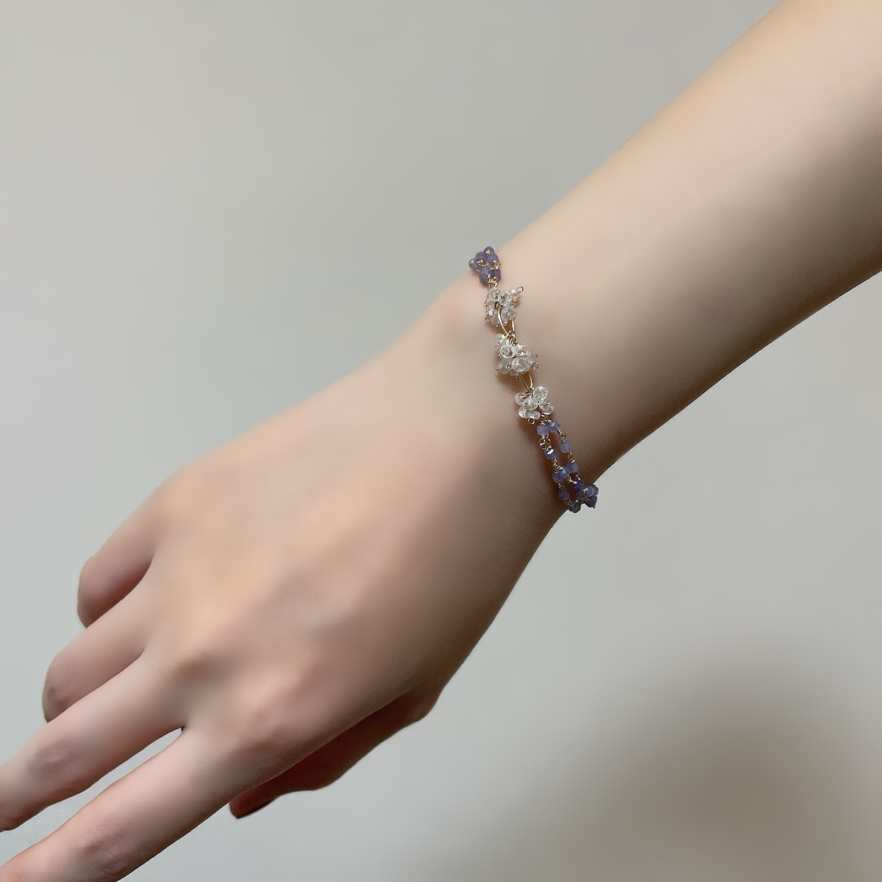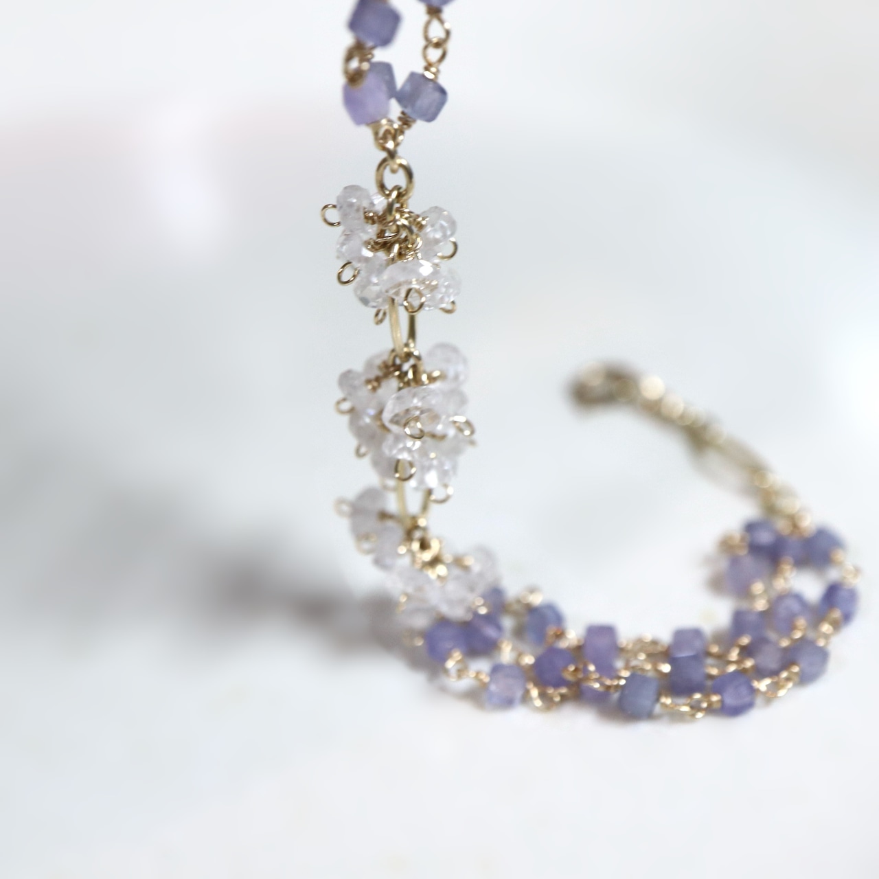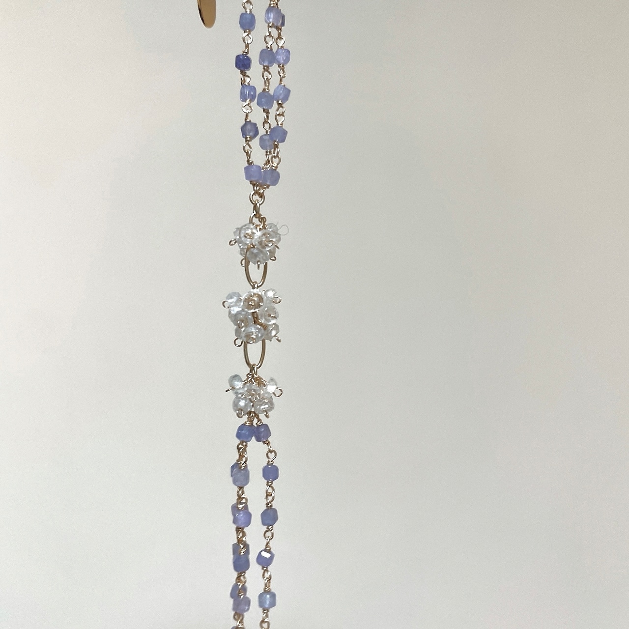 タンザナイトならではの優しく澄んだブルーカラーと、濃淡が織りなすニュアンスが手元にクラシカルな気品を添え、動くたびに艶やかに輝きます。
