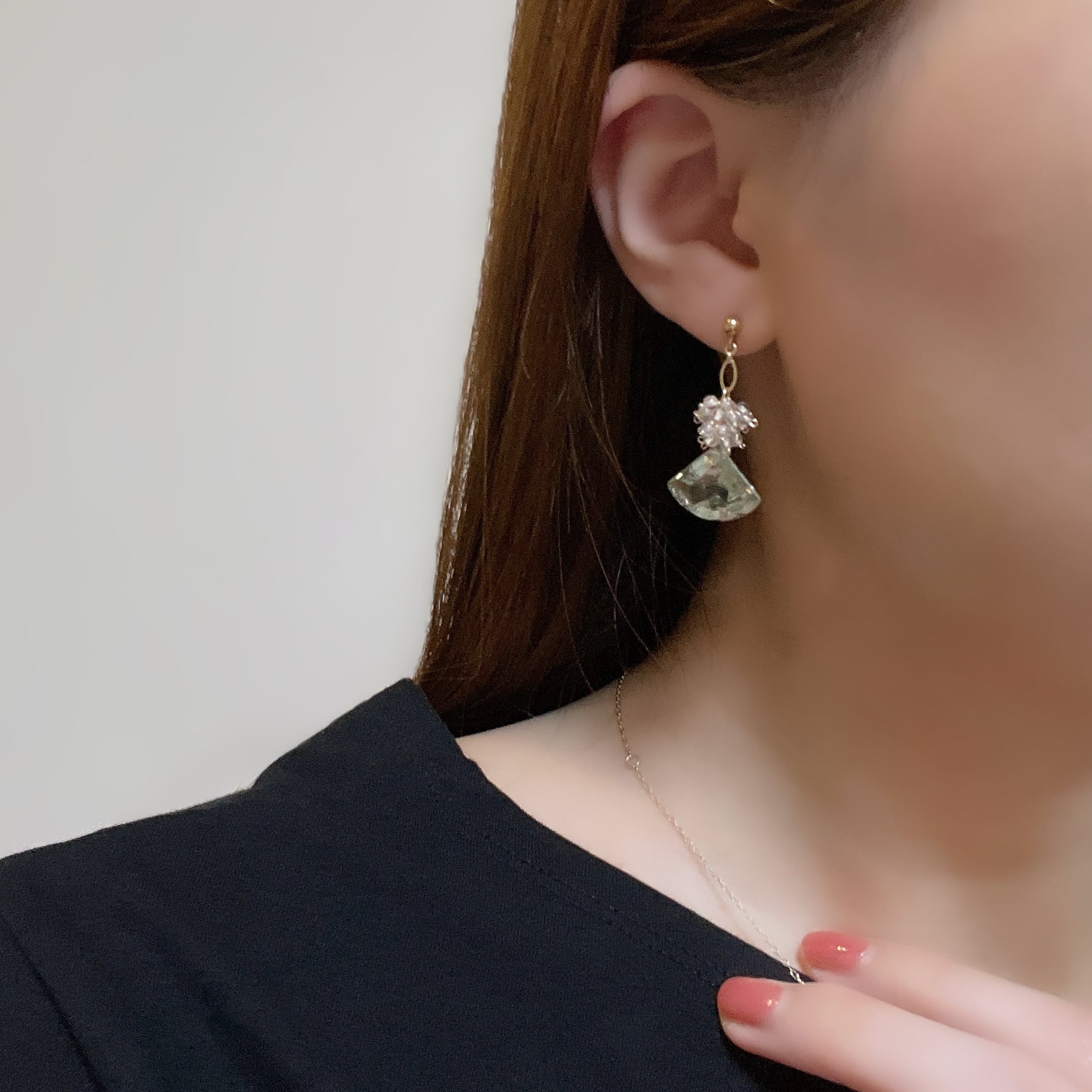 淡く澄んだグリーンアメジストを、可憐な扇カットに仕立てました。
