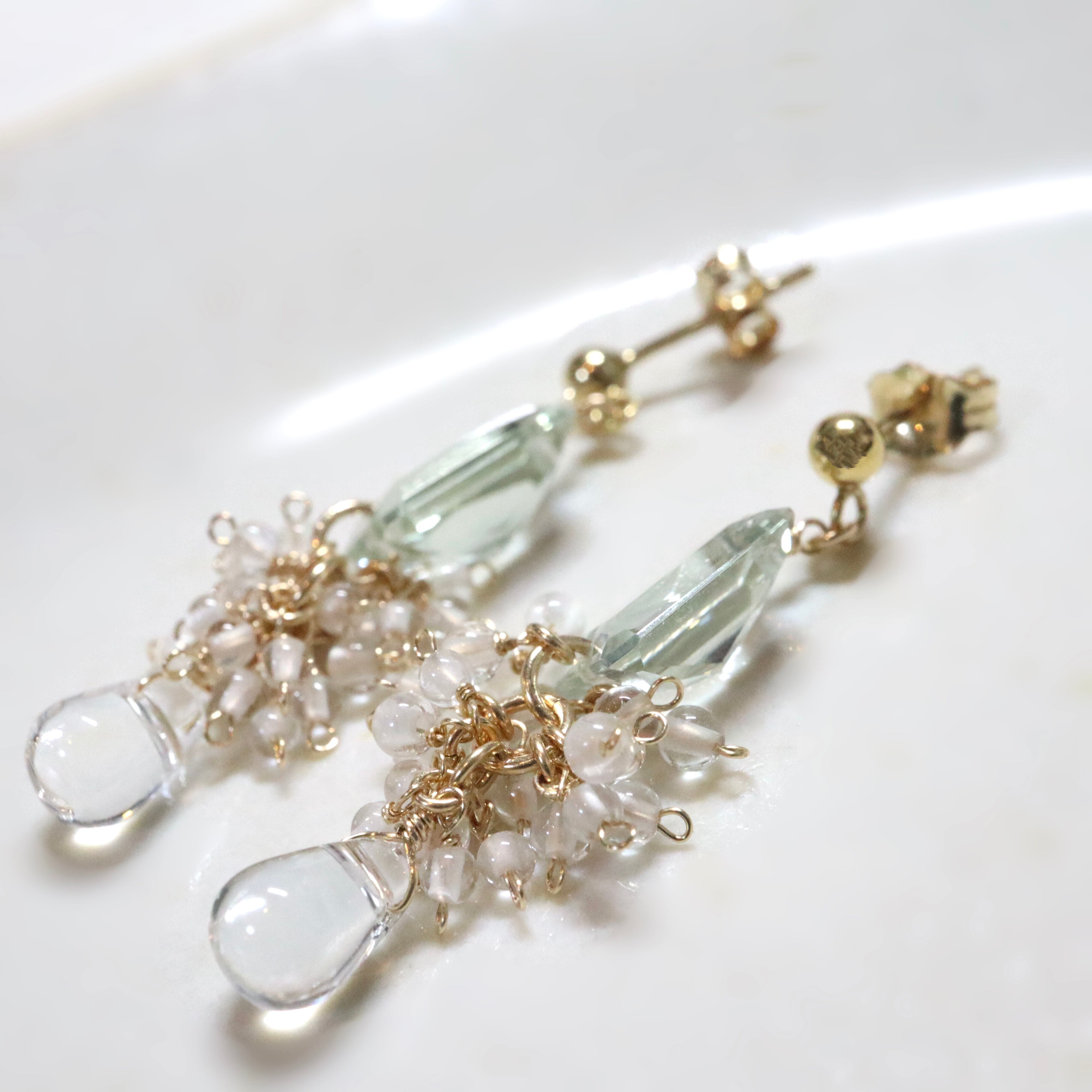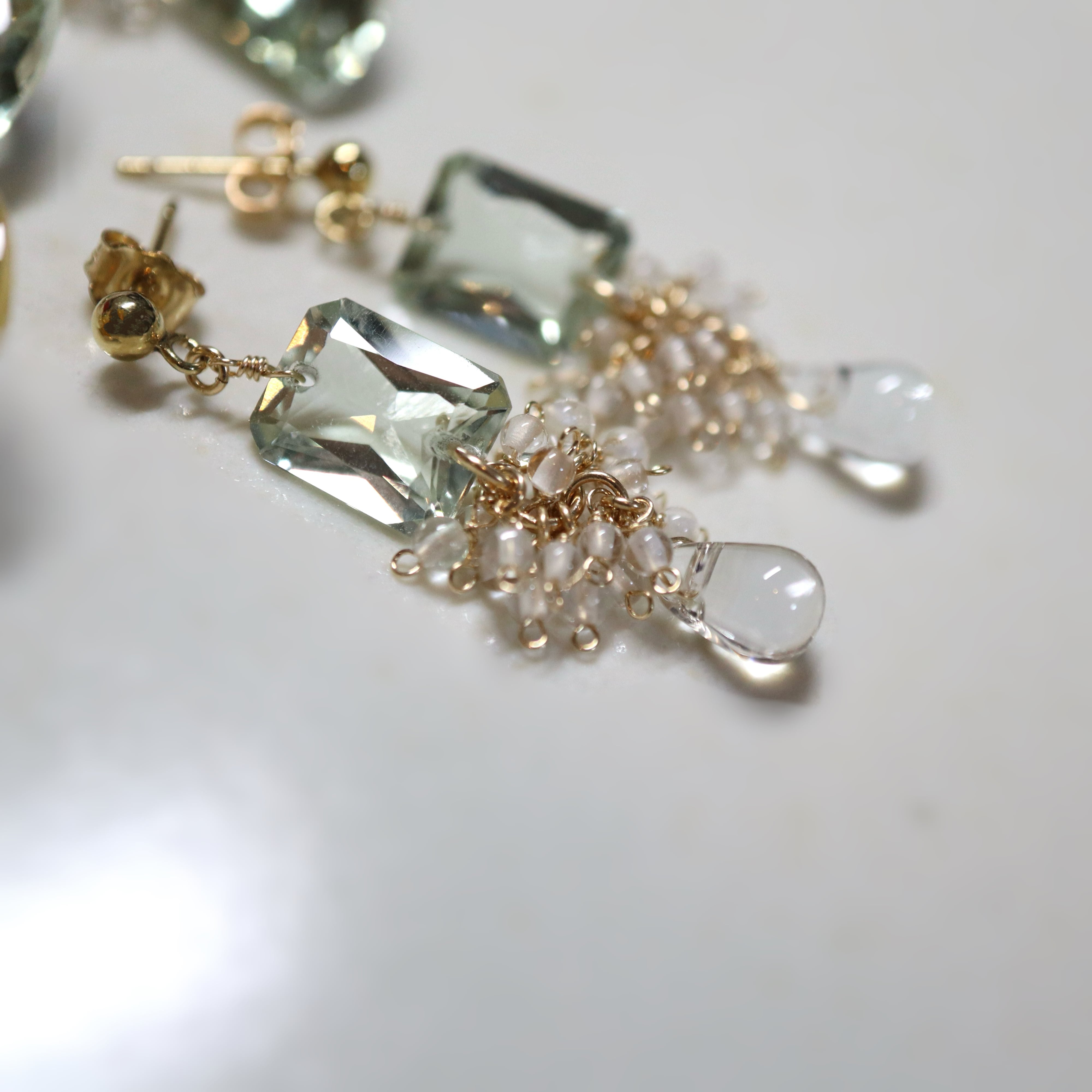 グリーンアメジストの下には、小さなクリスタルドロップを添えて。