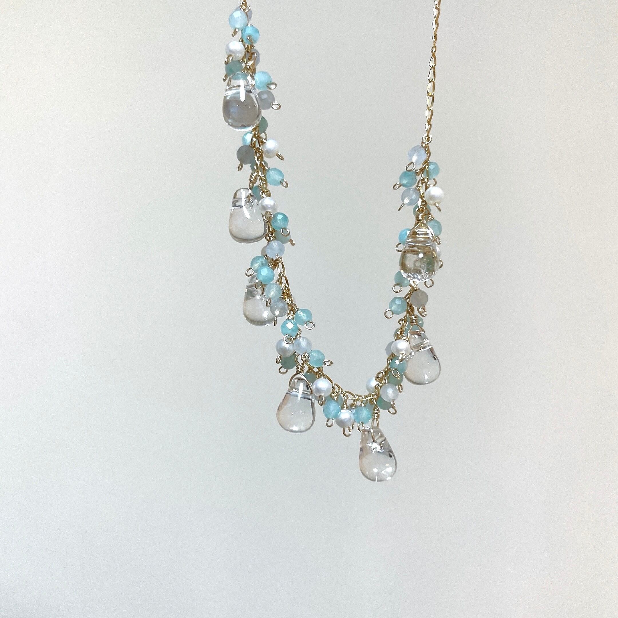 アマゾナイトシリカとグレイッシュブルージェードのミントブルーをポイントに、爽やかにきらめく軽やかなトーンに仕上げました。