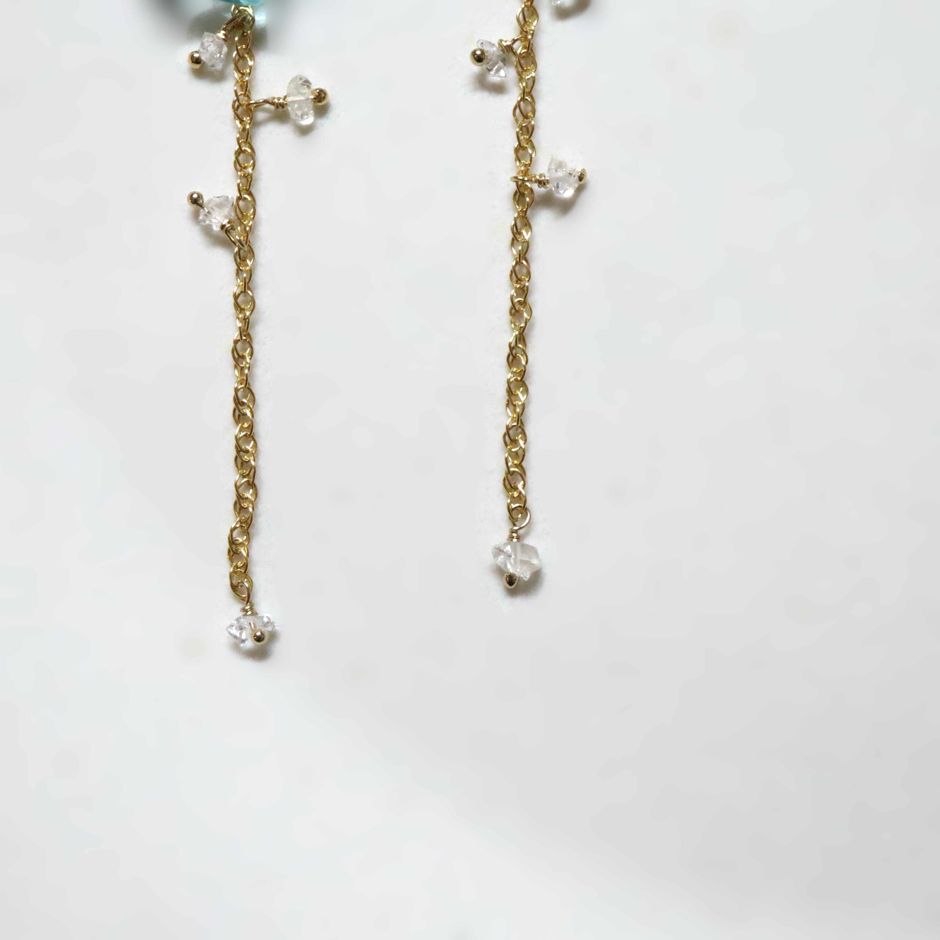 ボトムのチェーンには小粒のハーキマーダイヤモンドを添え、茎に滴る雫を表現。