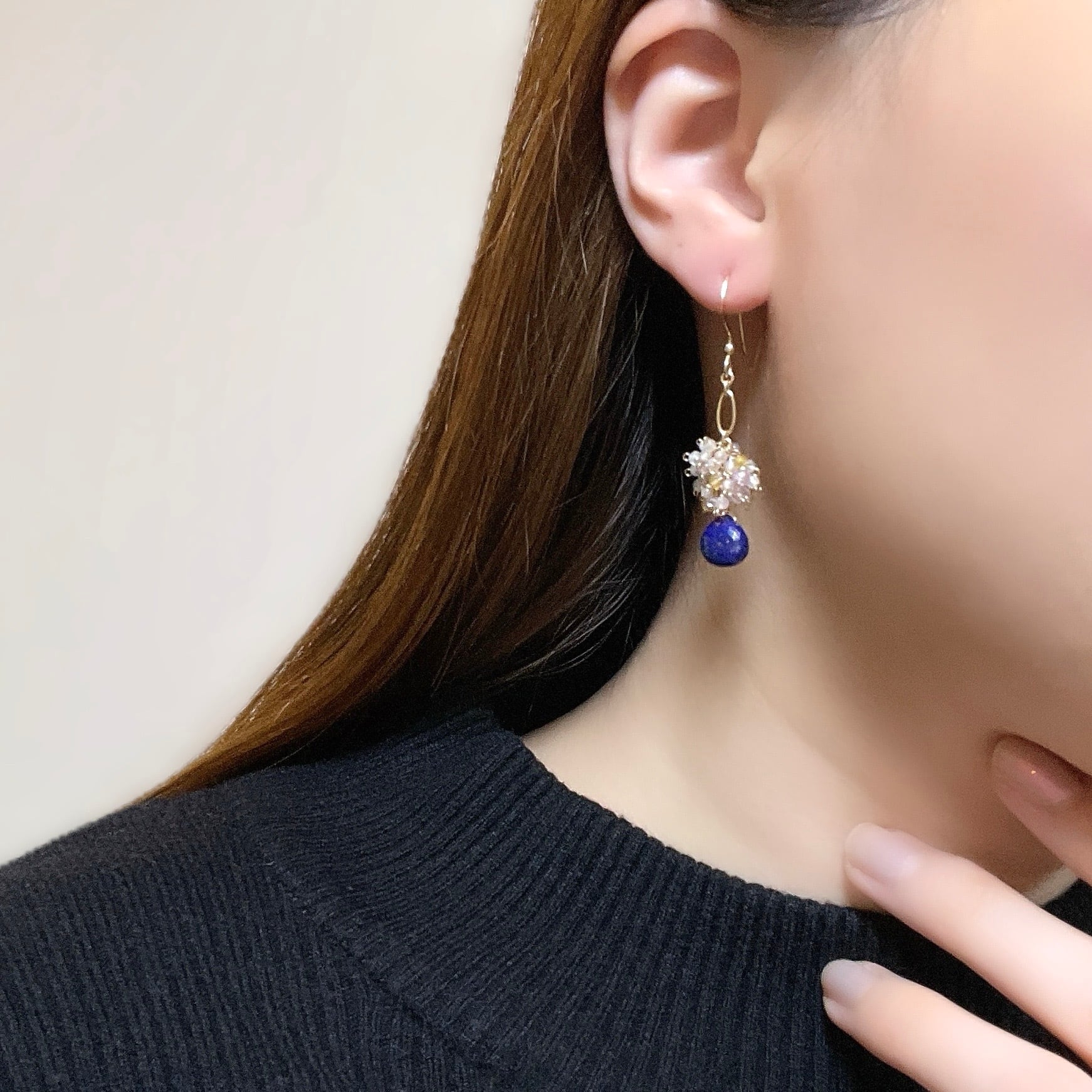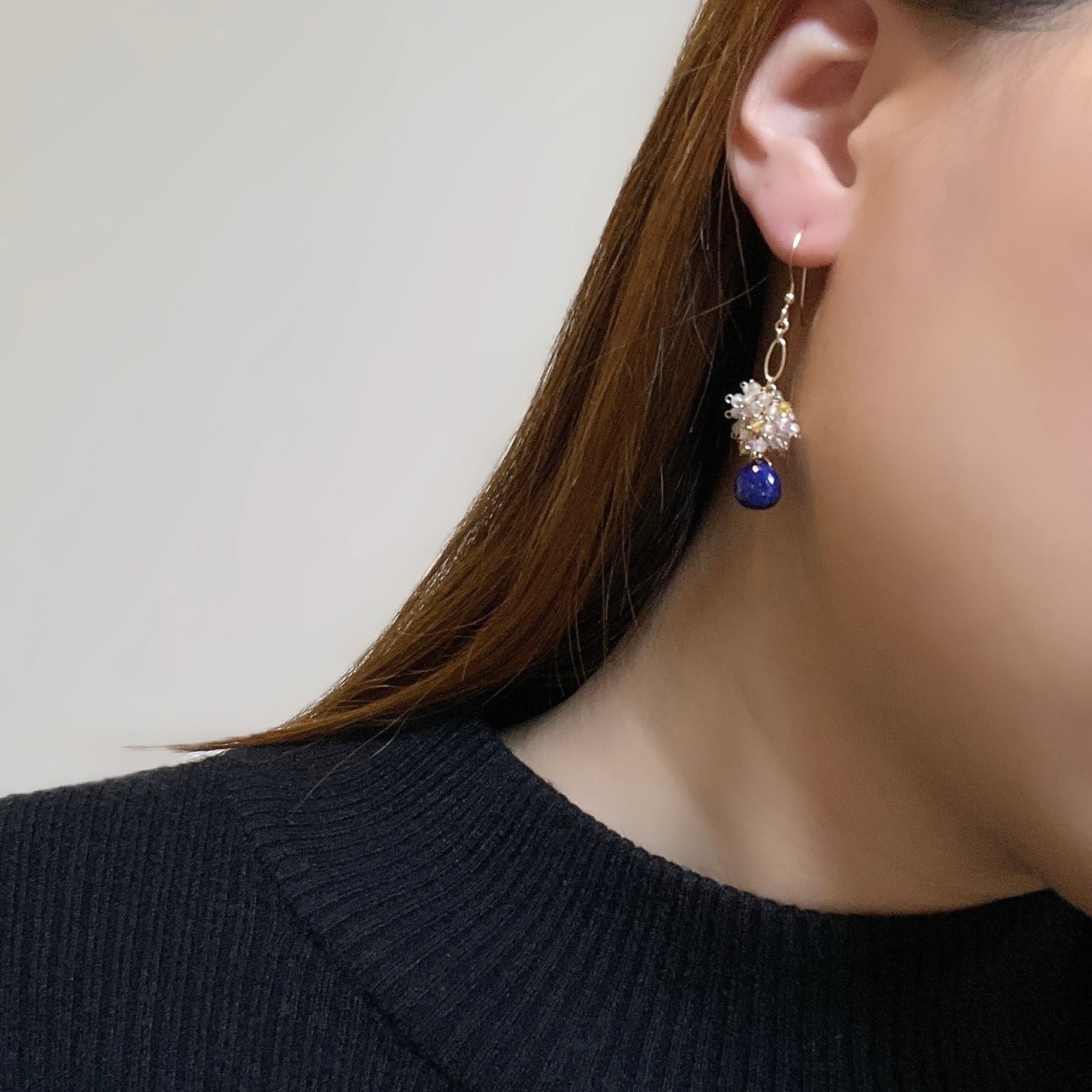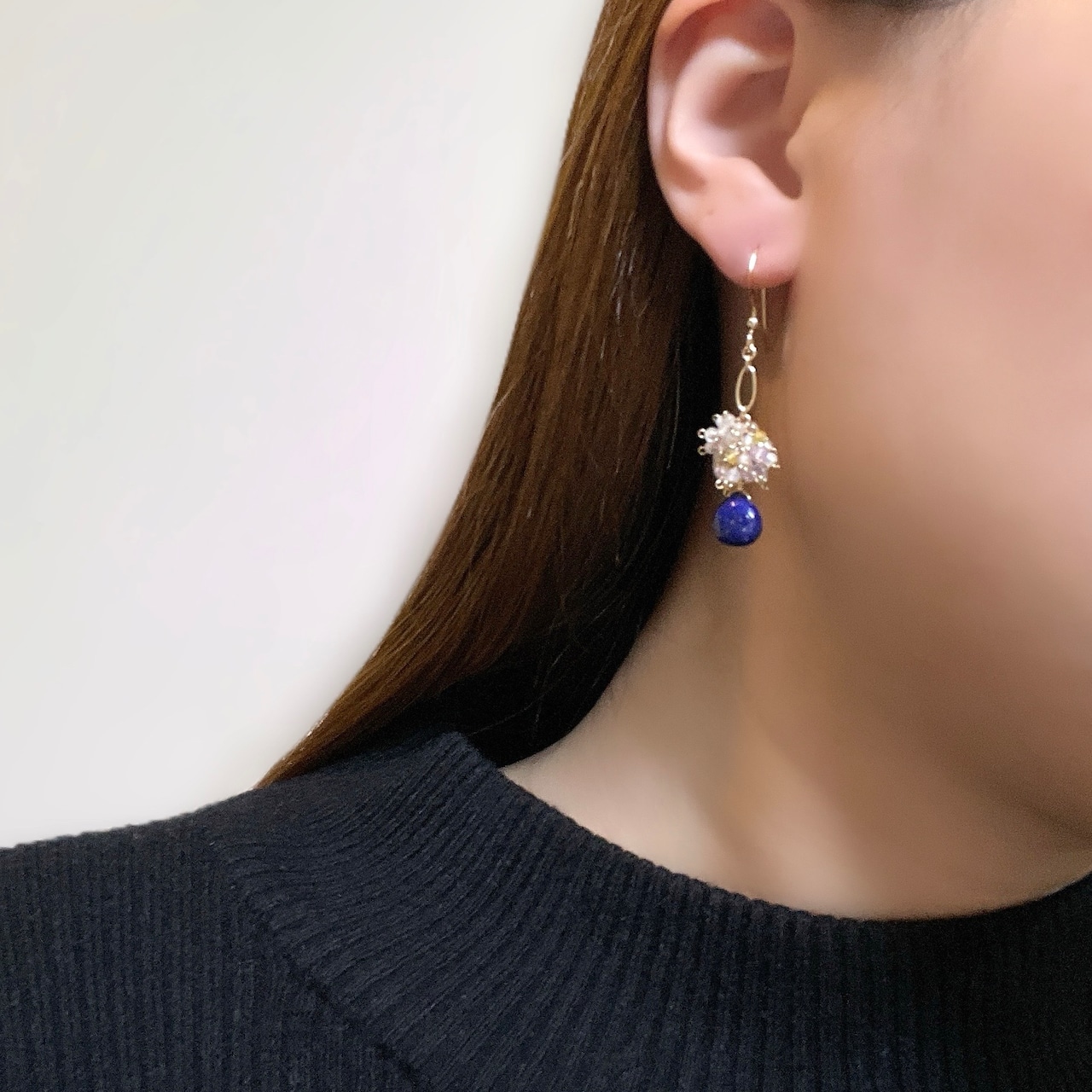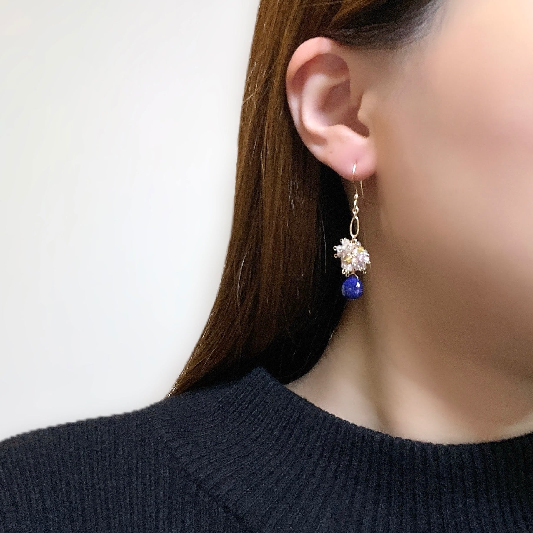 トップには小粒の天然石をふわりと束ね、程よくボリューミーで可憐なシルエットに仕上げました。