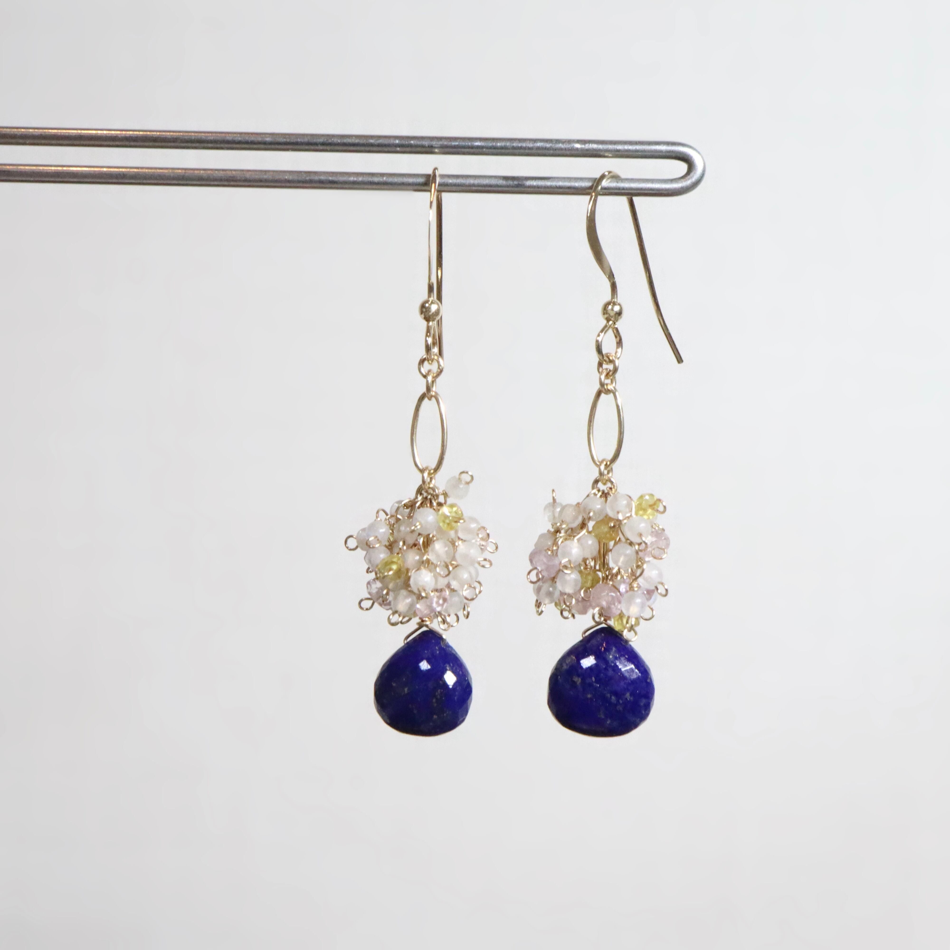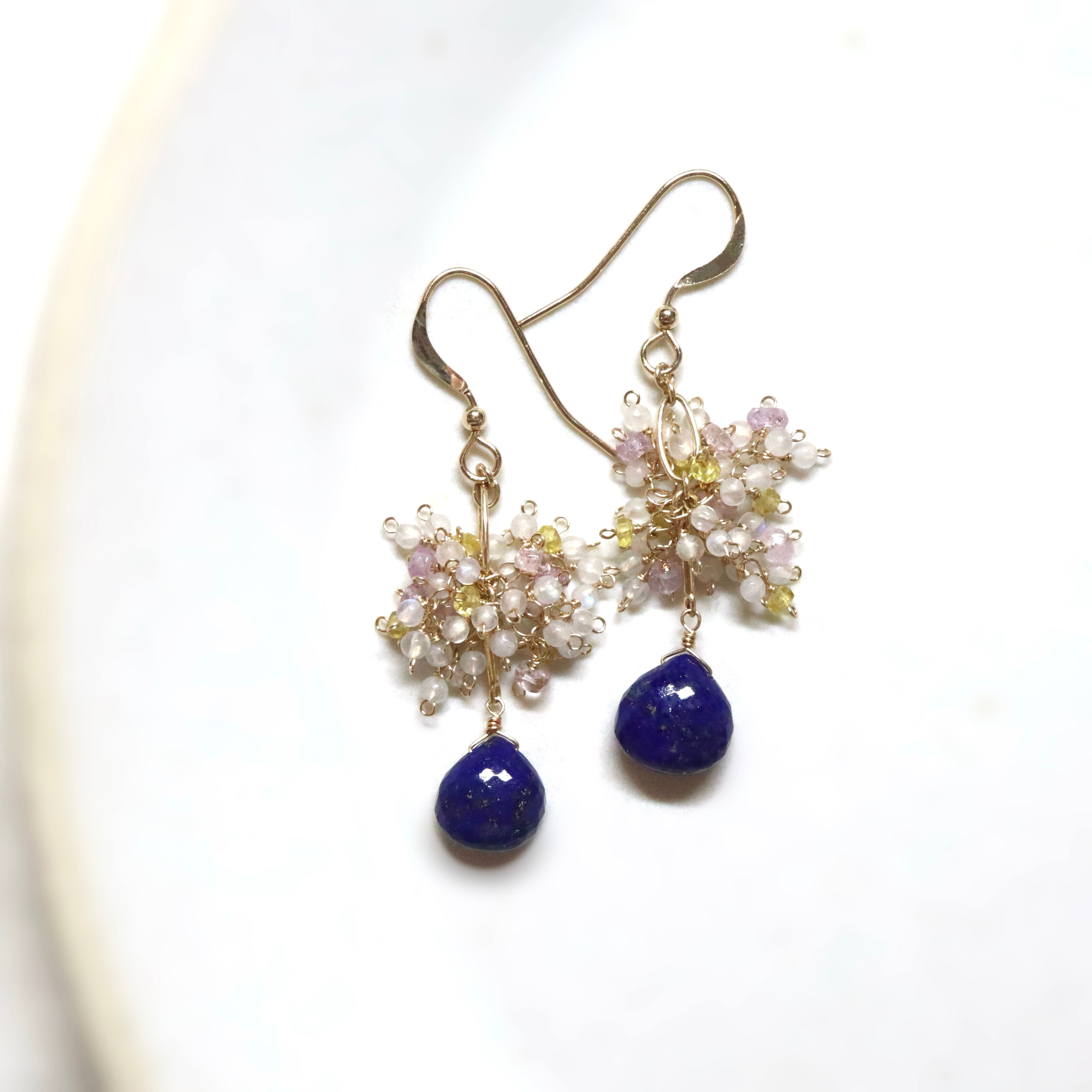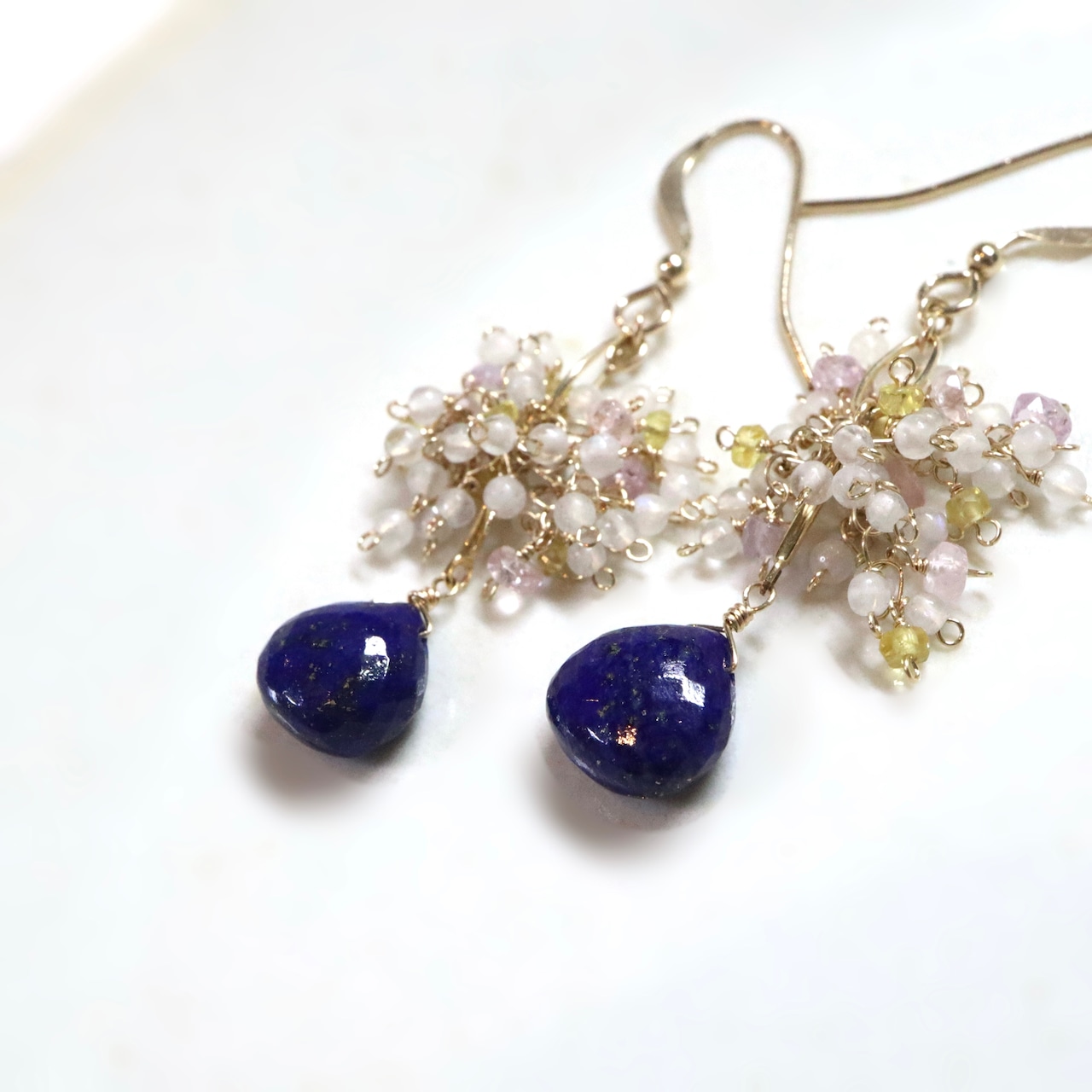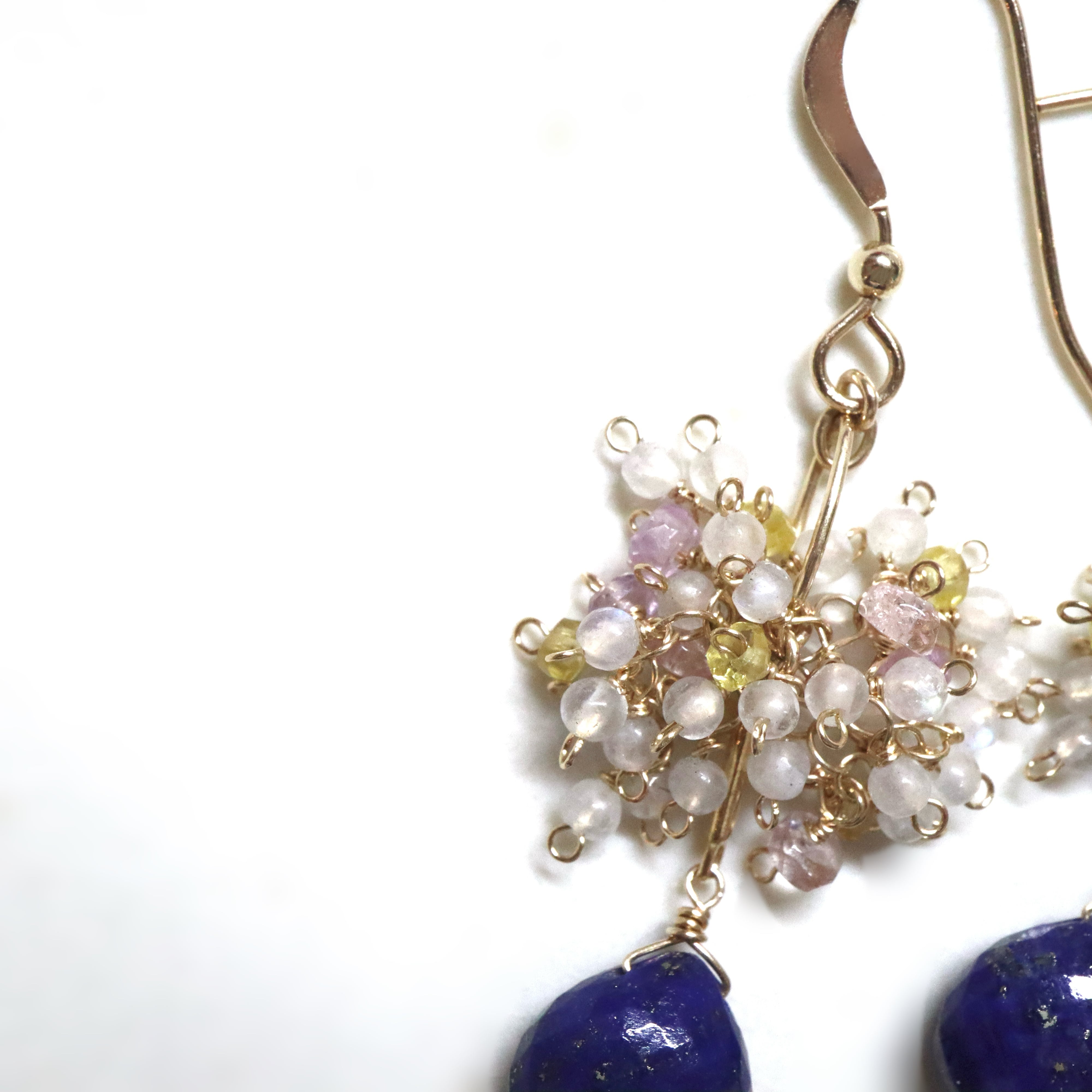 トップには小粒の天然石をふわりと束ね、程よくボリューミーで可憐なシルエットに仕上げました。