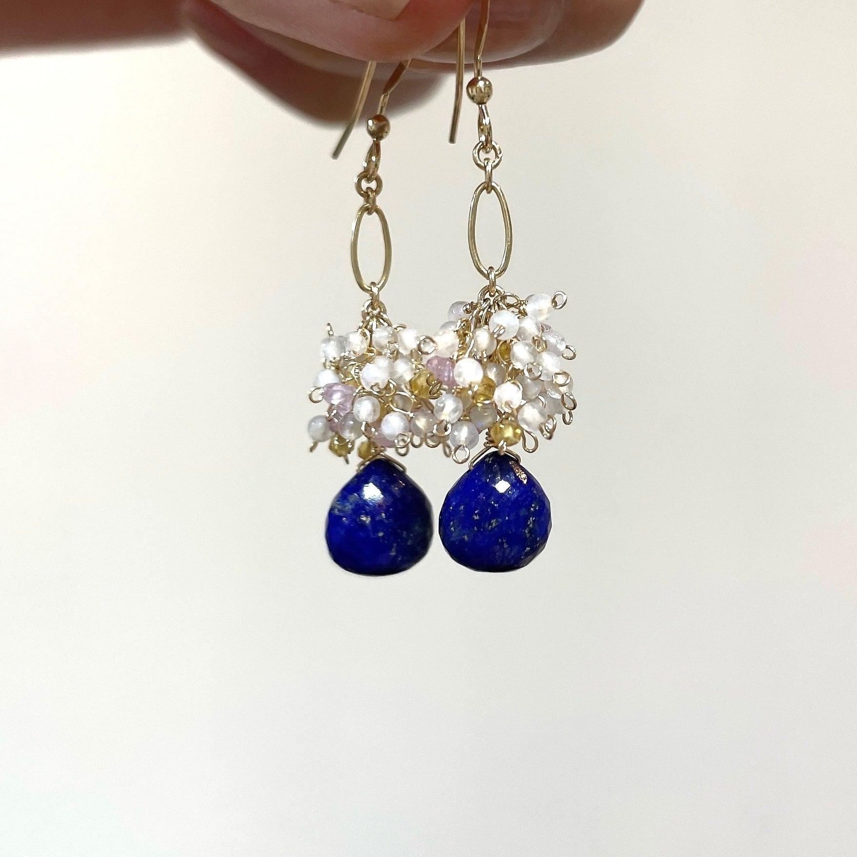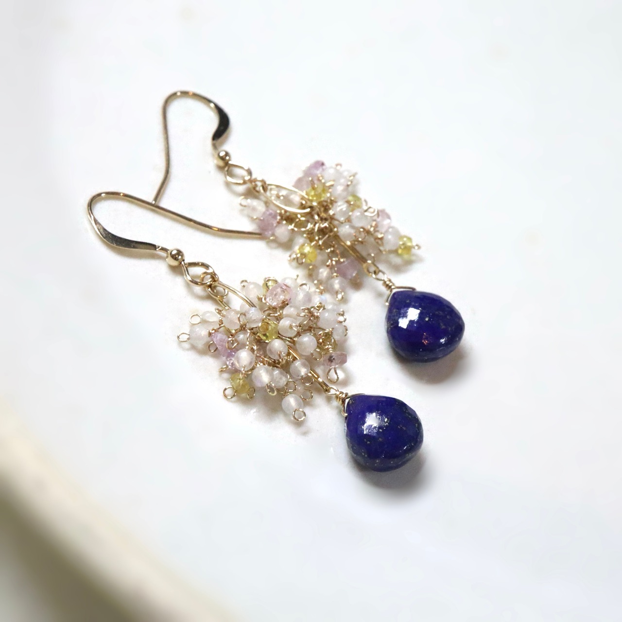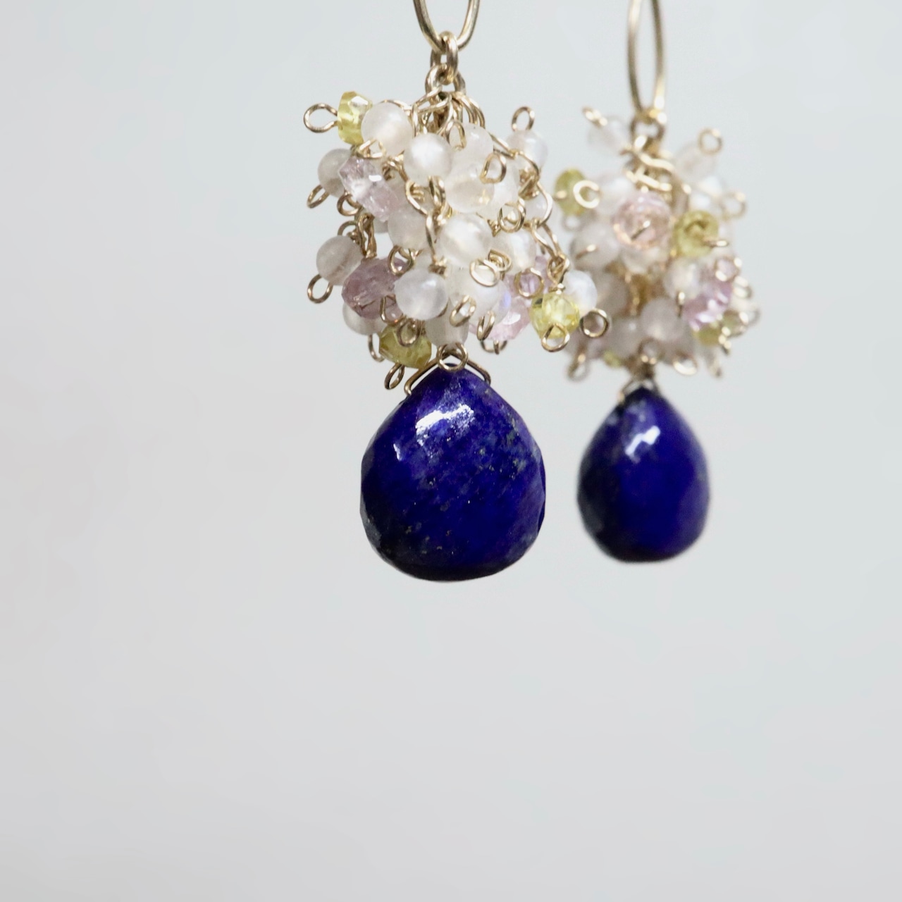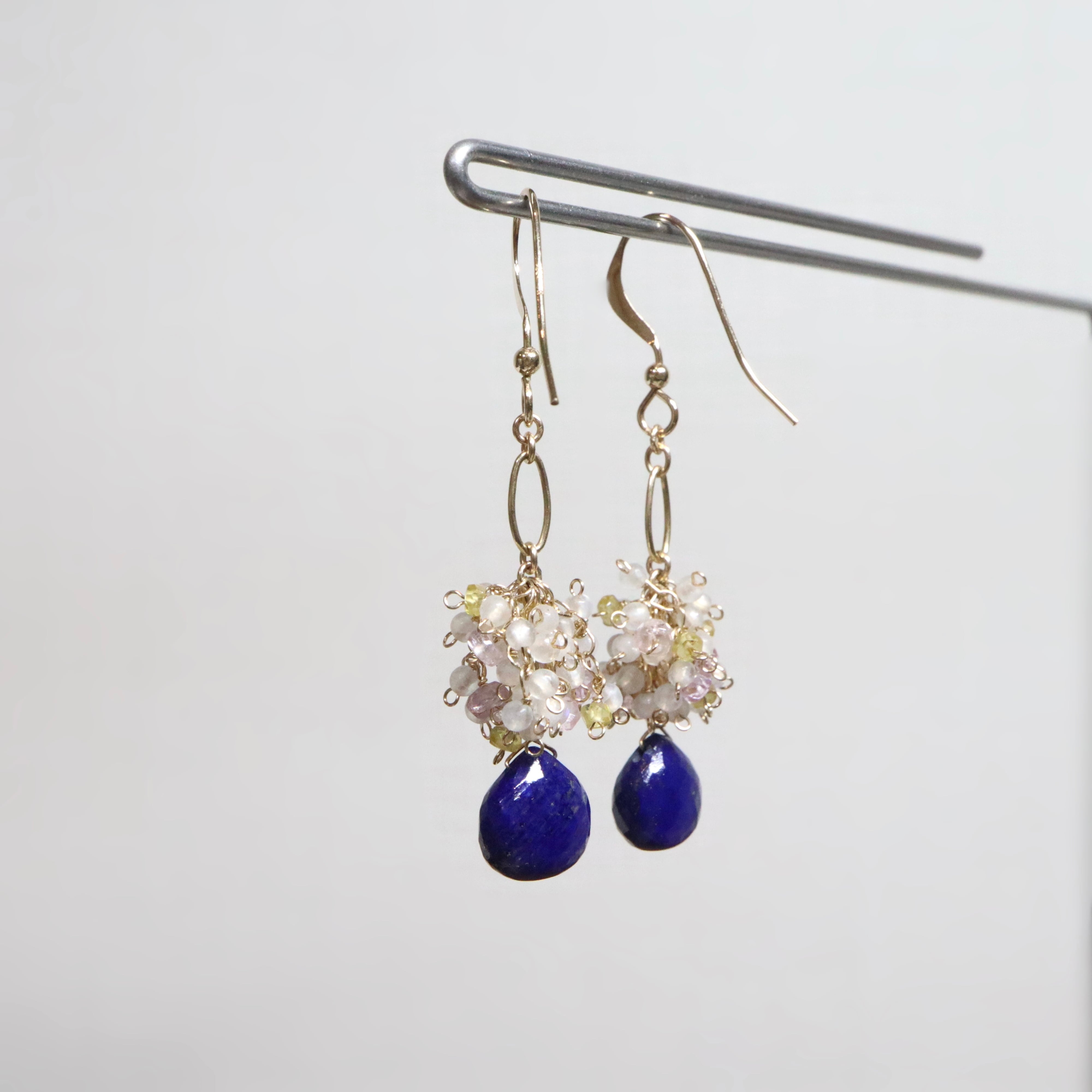 トップには小粒の天然石をふわりと束ね、程よくボリューミーで可憐なシルエットに仕上げました。