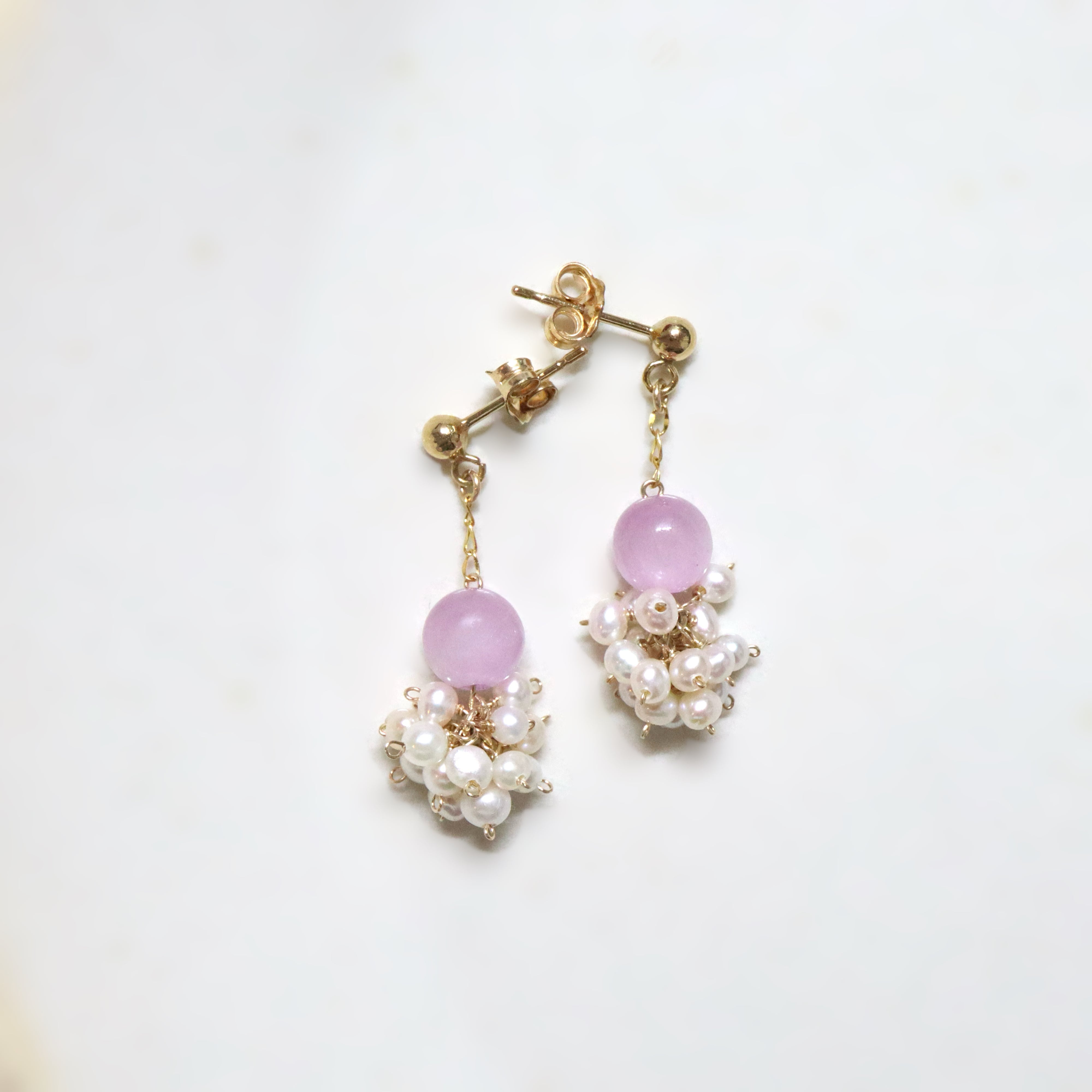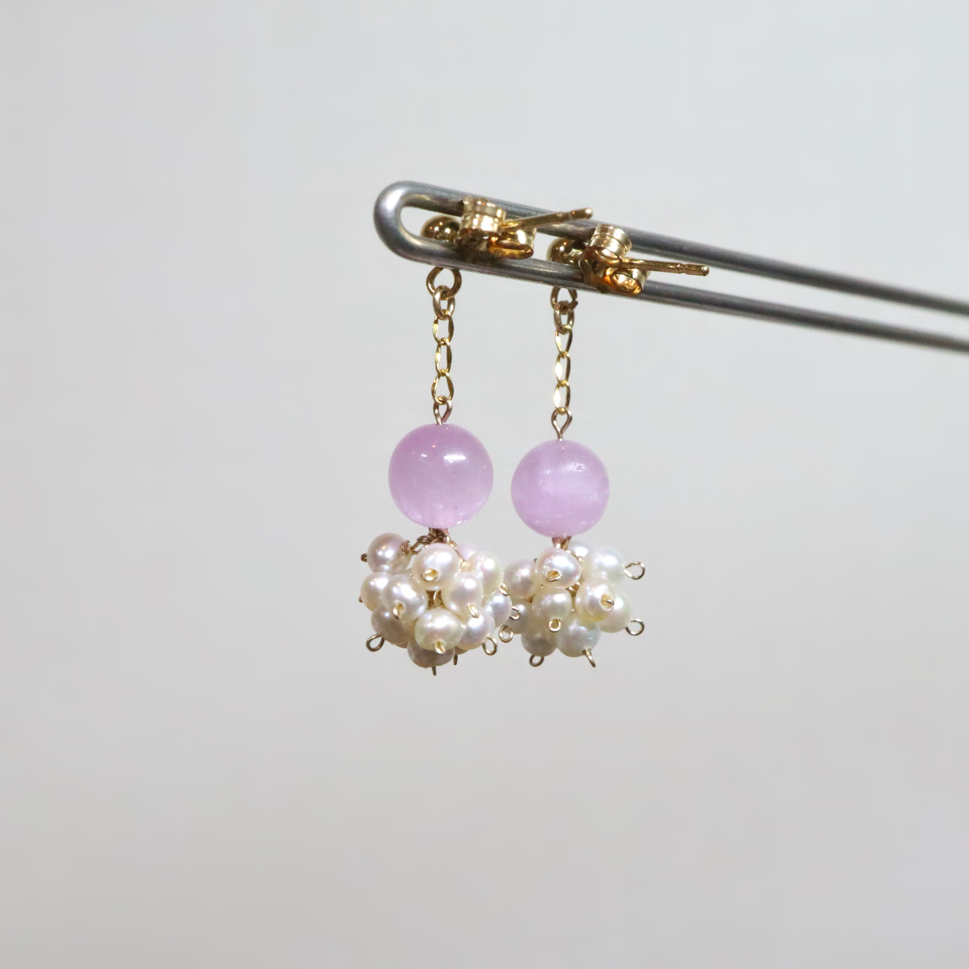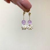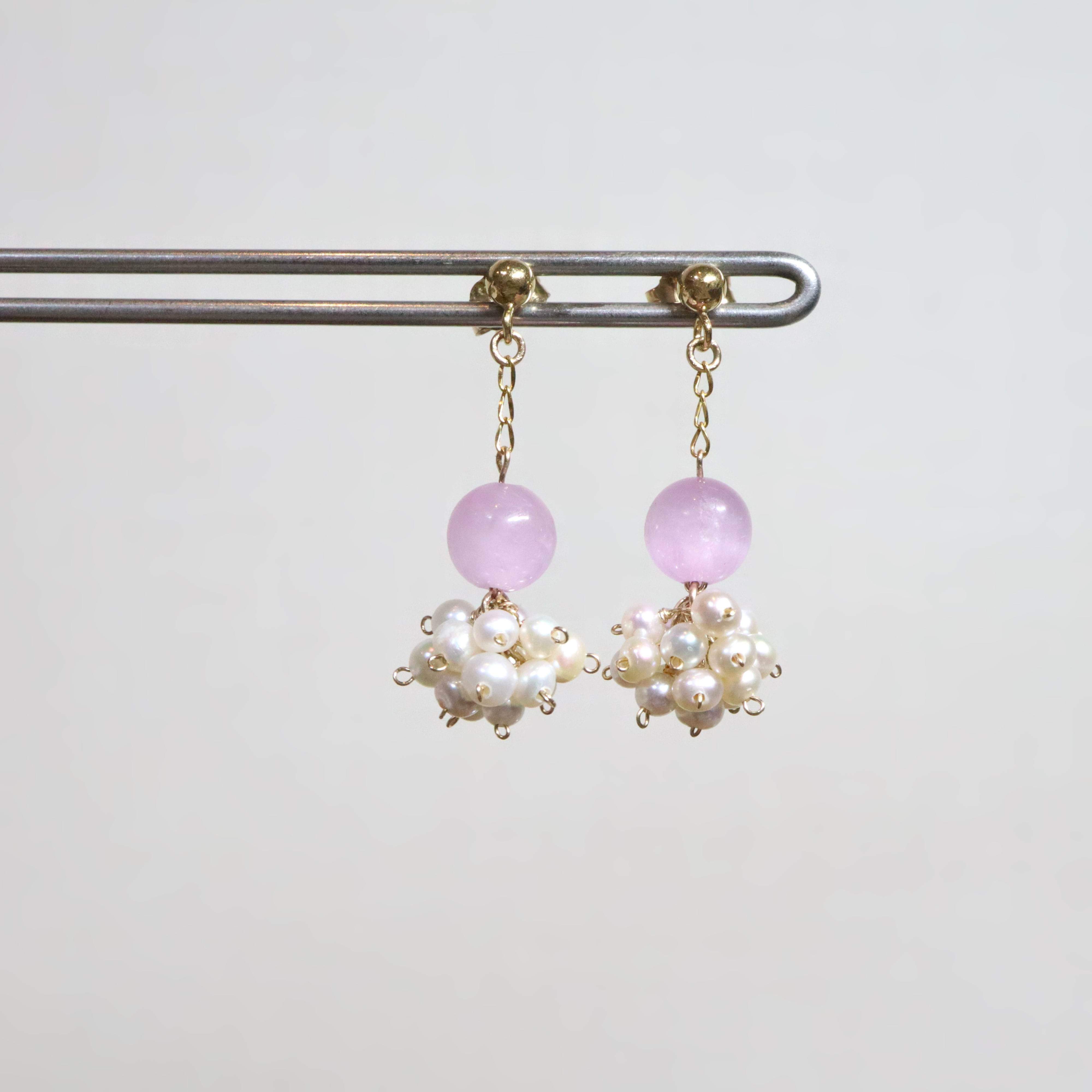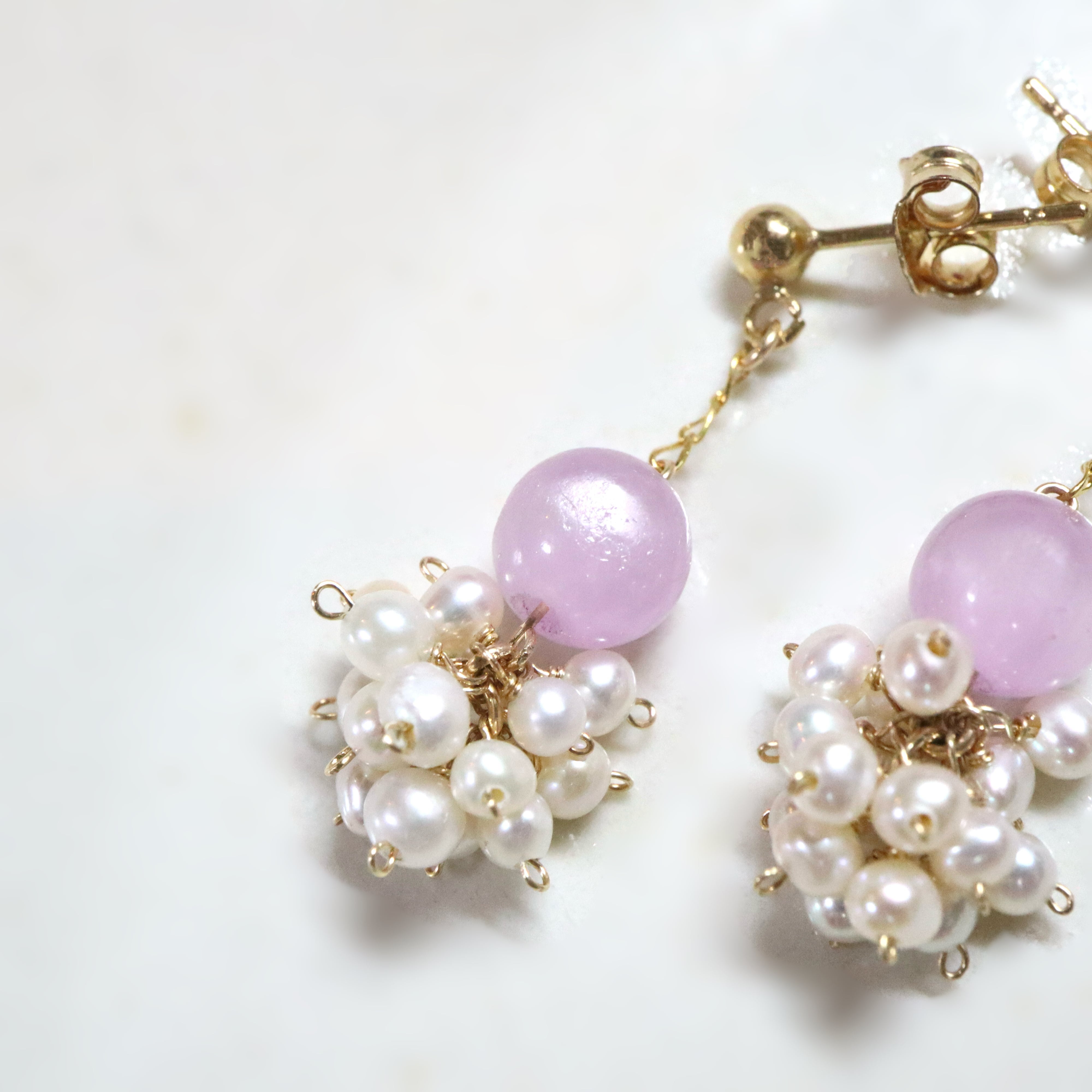ボトムには小粒のホワイトパールをたっぷりと添え、可憐に揺れるシルエットが耳元を華やかに見せてくれます。