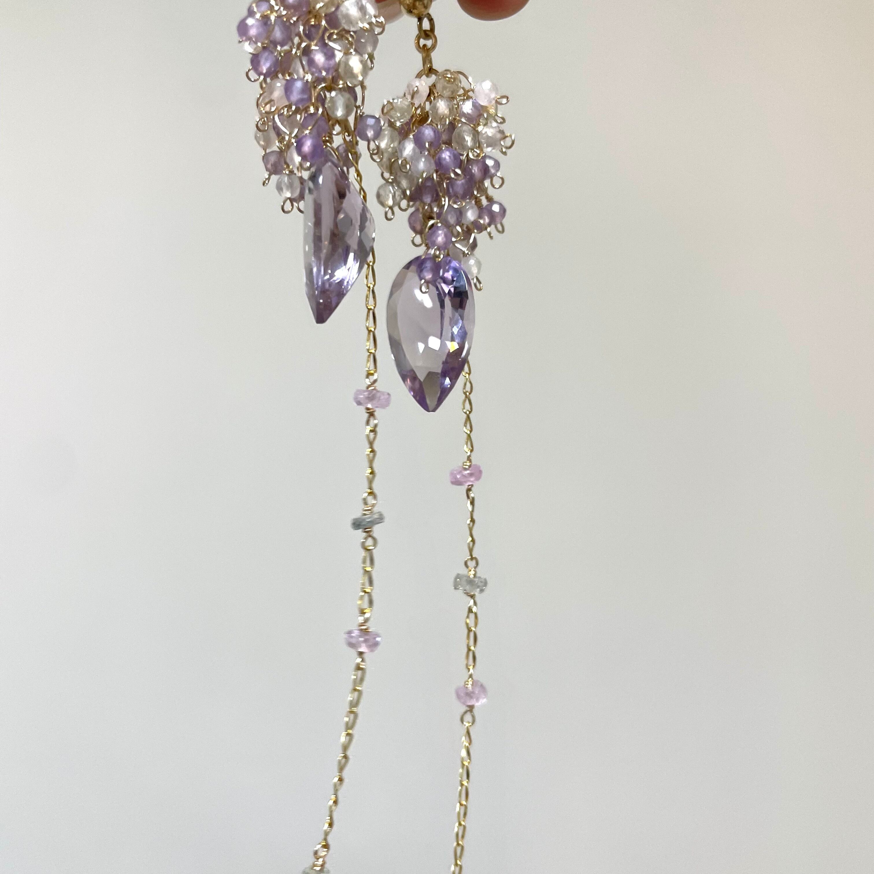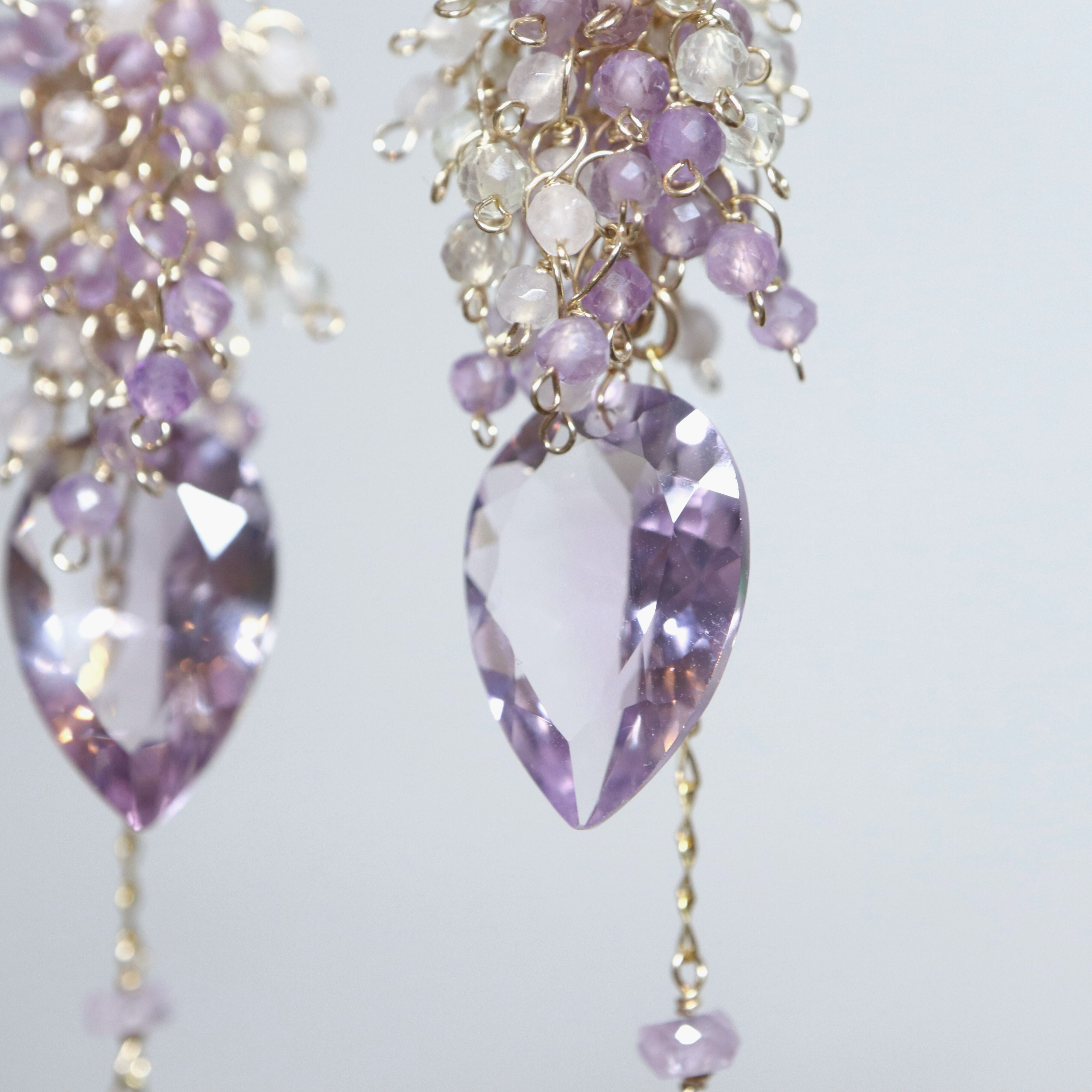 トップには、小粒のピンクアメジスト、ローズクォーツ、レモンクォーツを贅沢にあしらい、やさしい色の重なりが春雨のようなみずみずしさとふわりと広がる華やかさを表現しました。