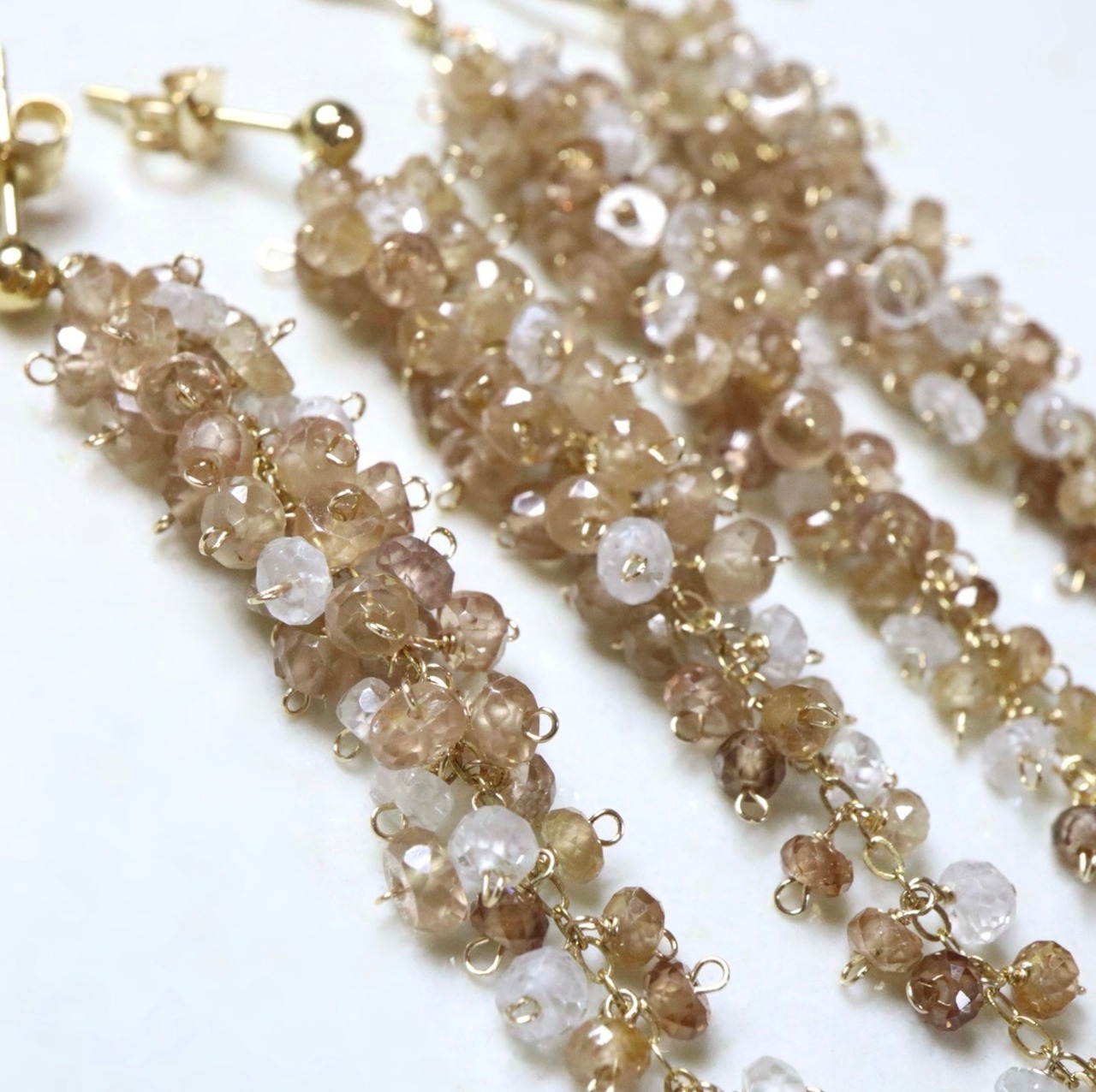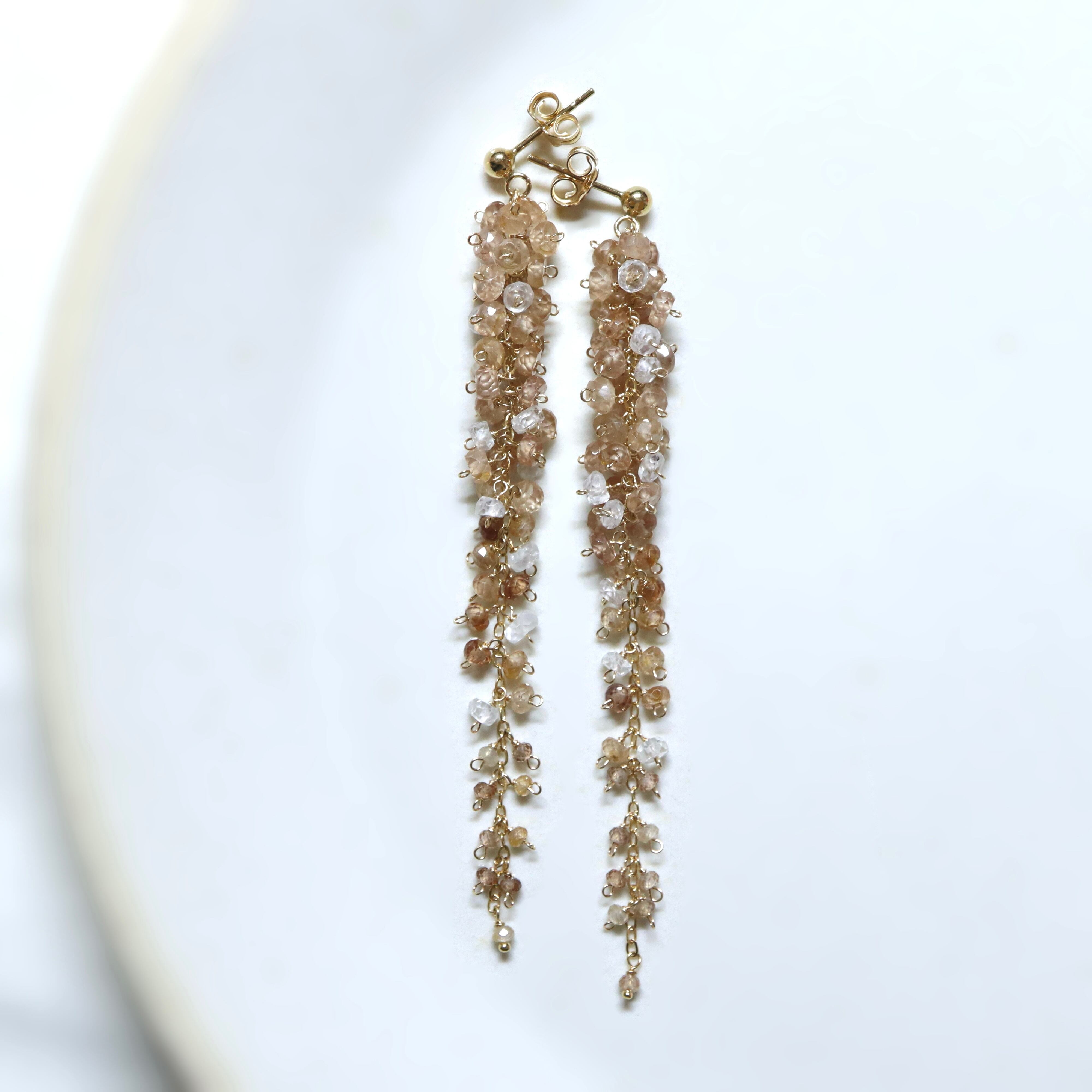 champagne brown は、ブラウンジルコンのやわらかなシャンパンブラウンカラーをベースに、ボトムに向かって濃淡の異なるブラウンがさりげなく重なり、奥行きのある上品な表情に。