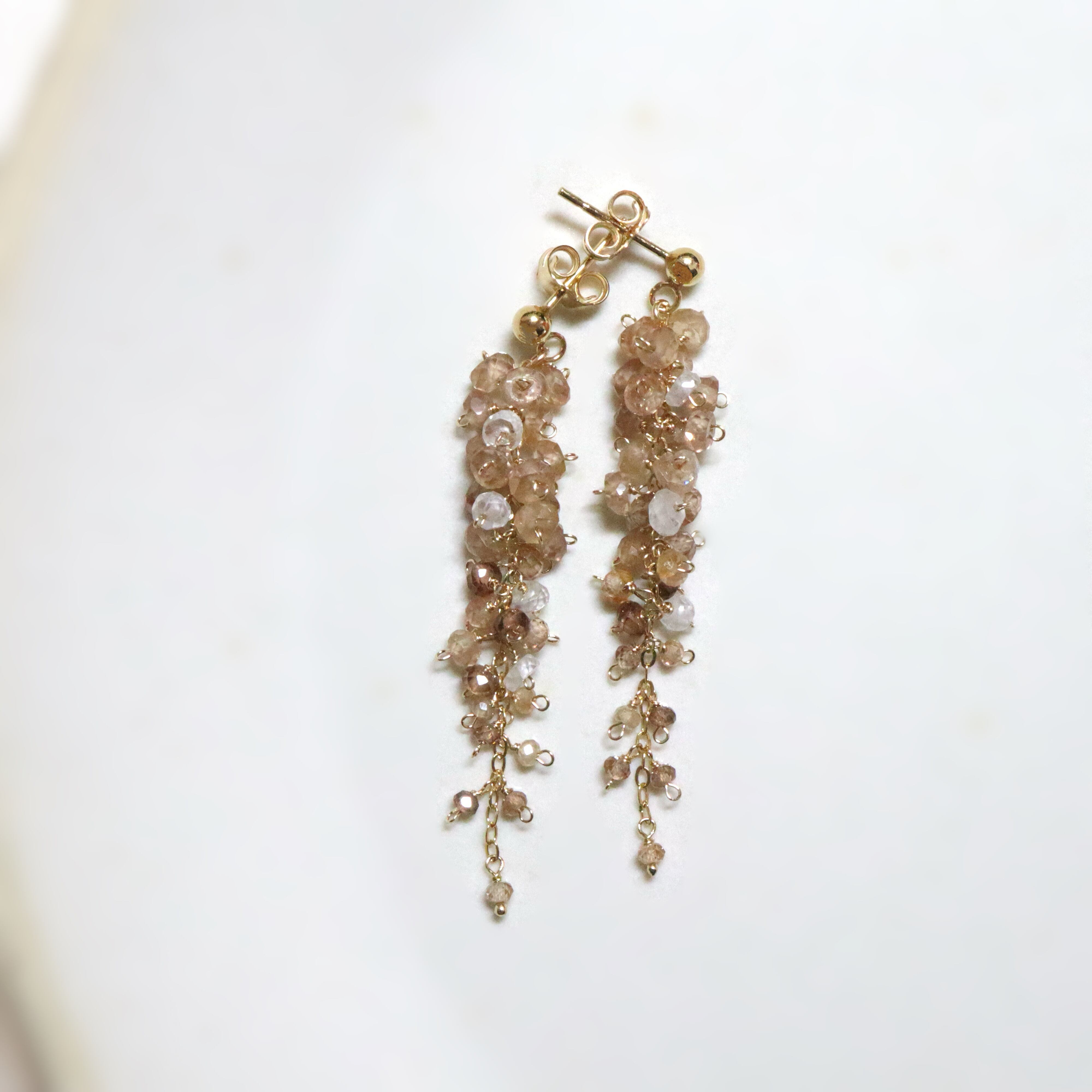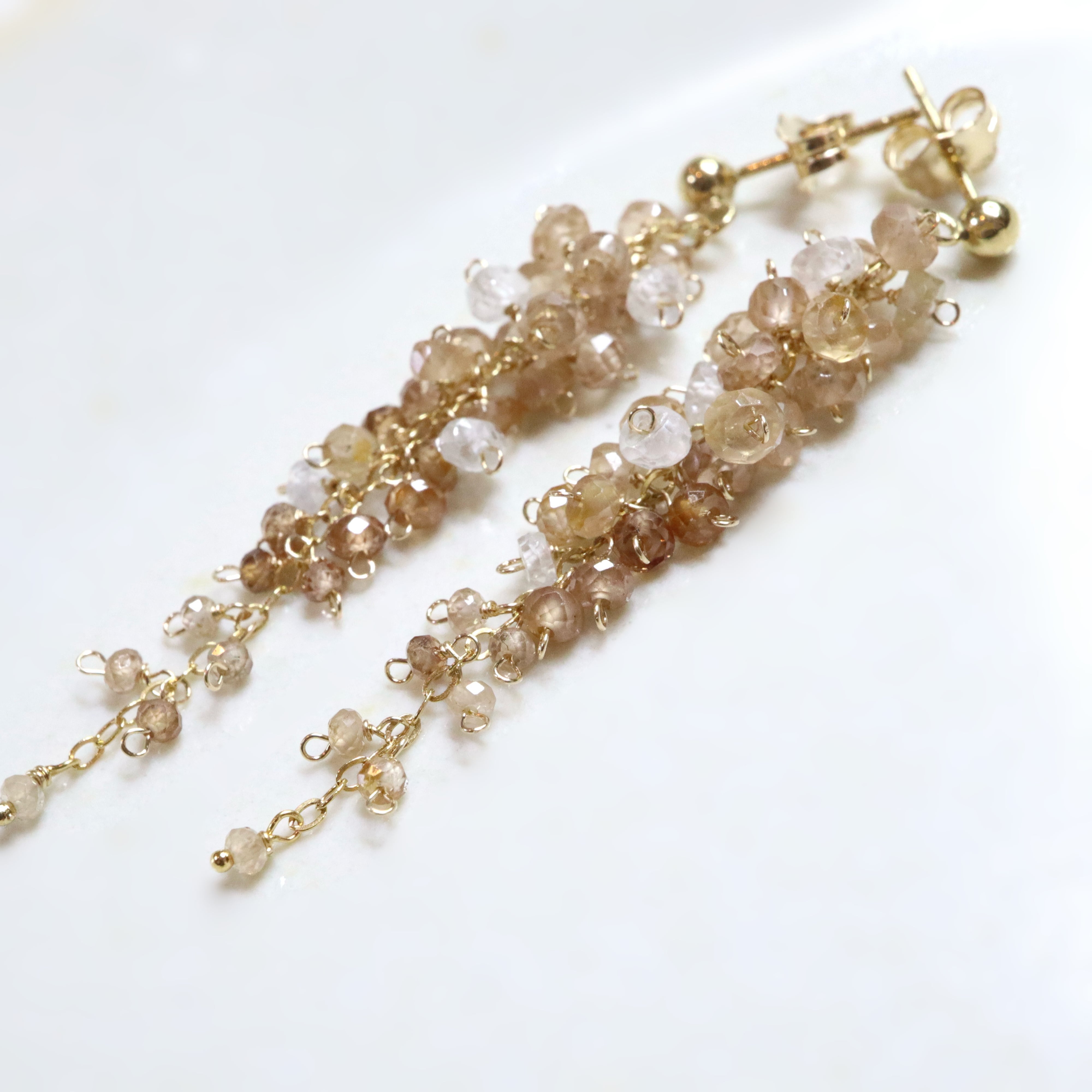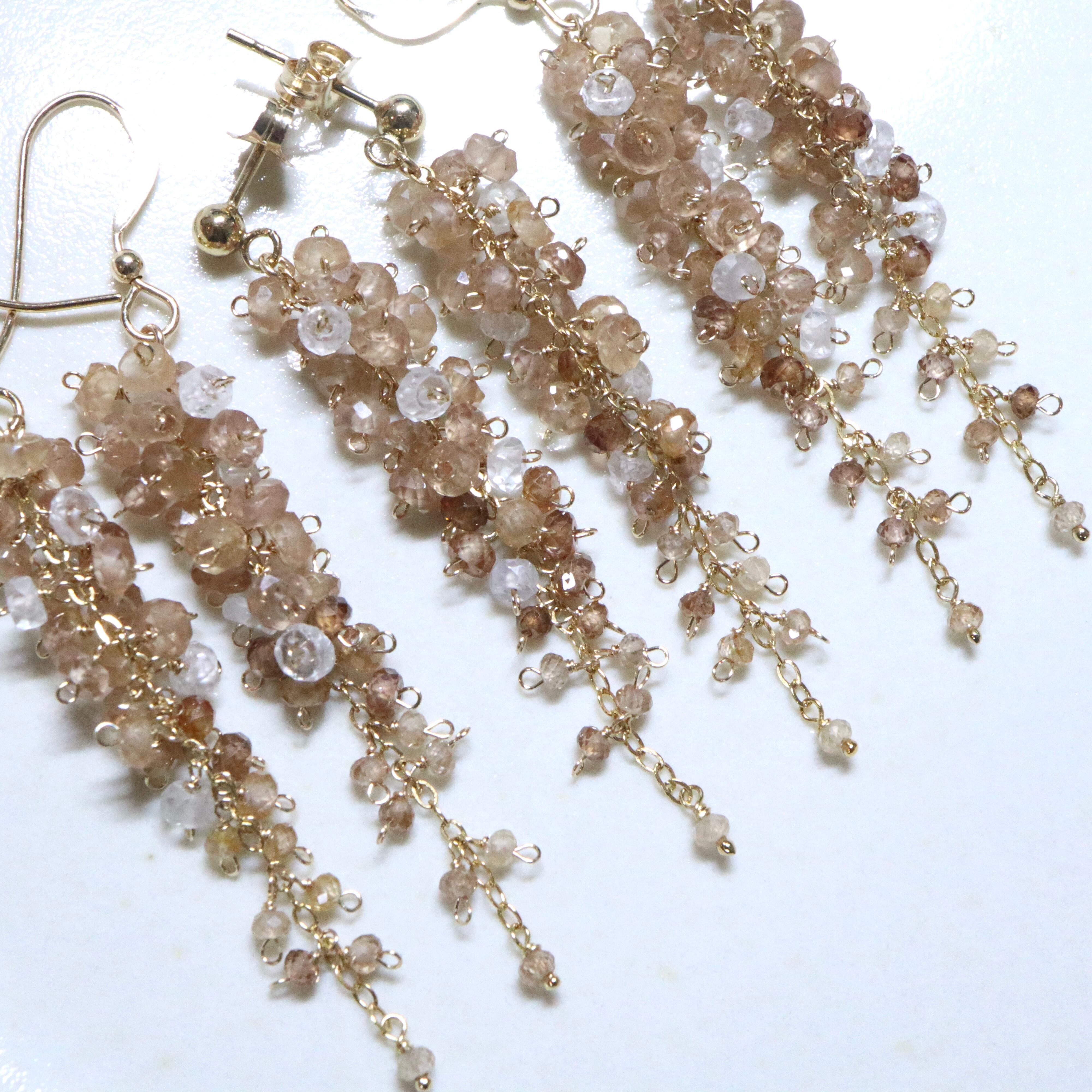 champagne brown は、ブラウンジルコンのやわらかなシャンパンブラウンカラーをベースに、ボトムに向かって濃淡の異なるブラウンがさりげなく重なり、奥行きのある上品な表情に。