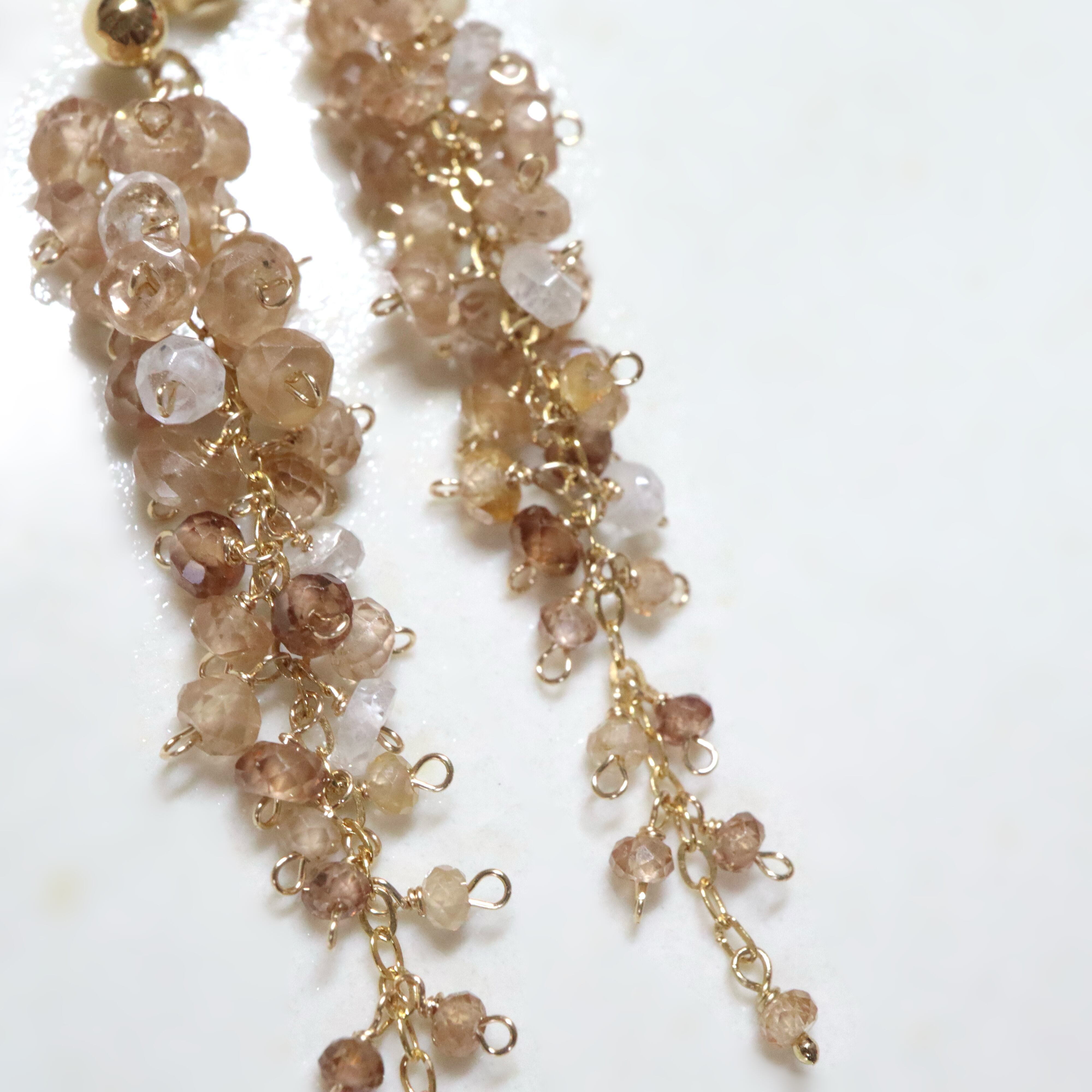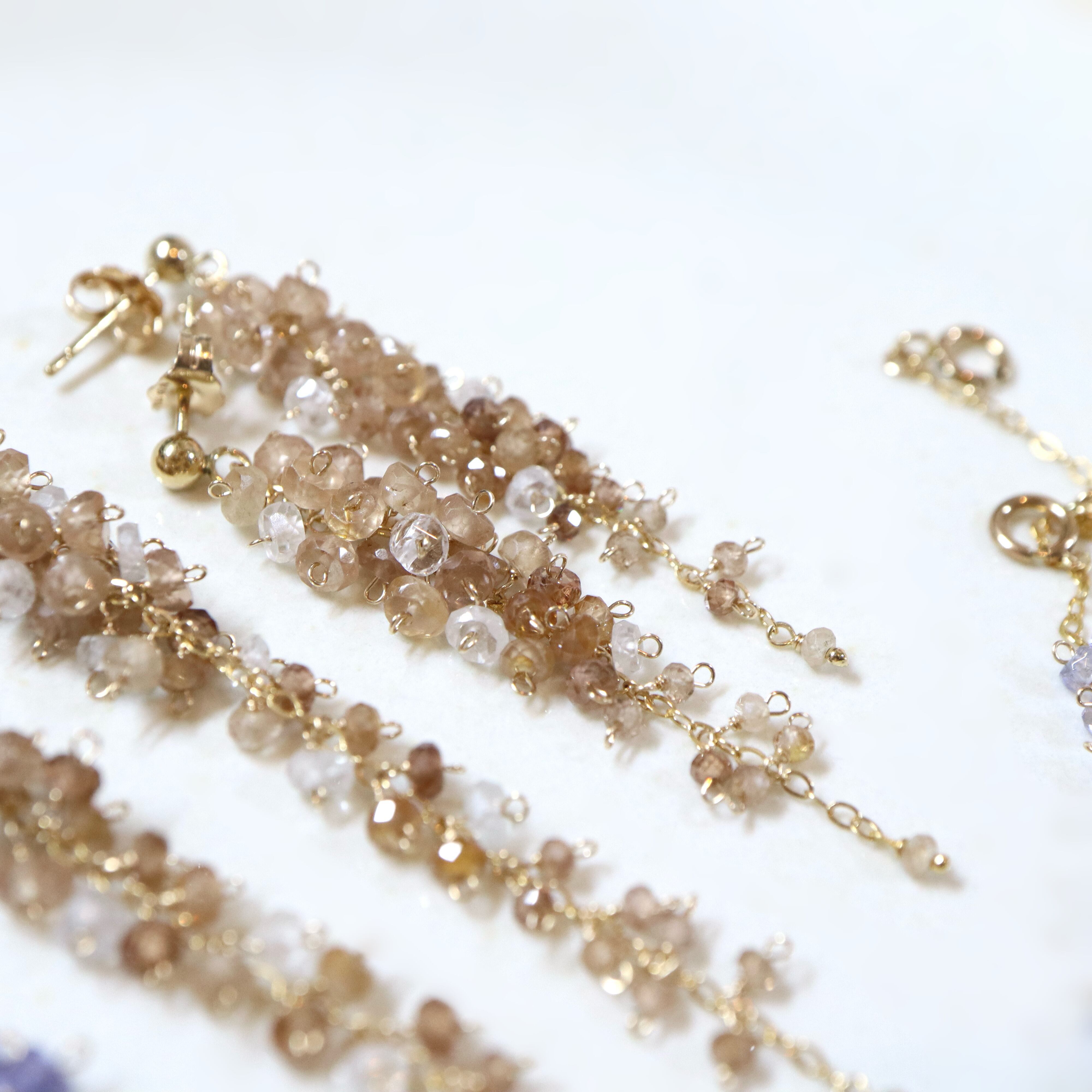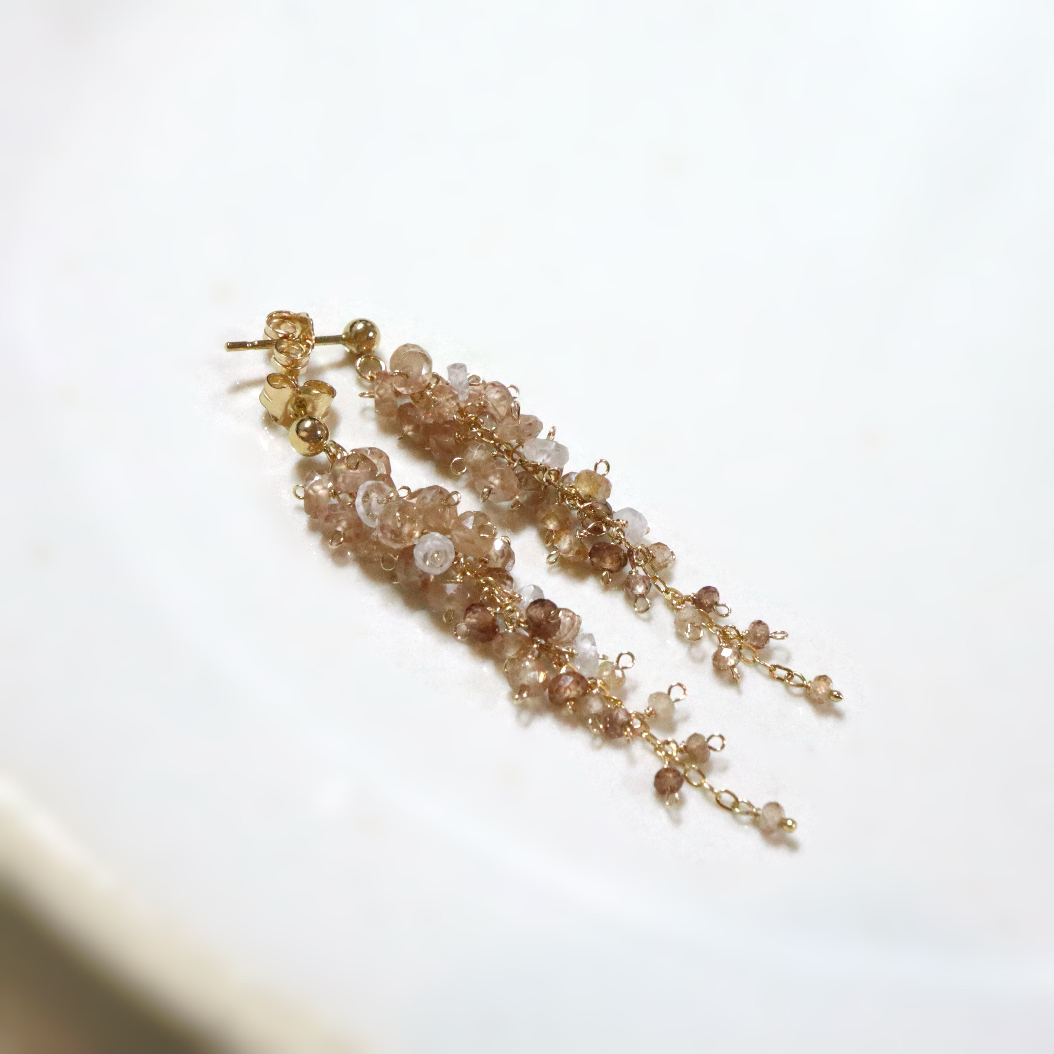champagne brown は、ブラウンジルコンのやわらかなシャンパンブラウンカラーをベースに、ボトムに向かって濃淡の異なるブラウンがさりげなく重なり、奥行きのある上品な表情に。