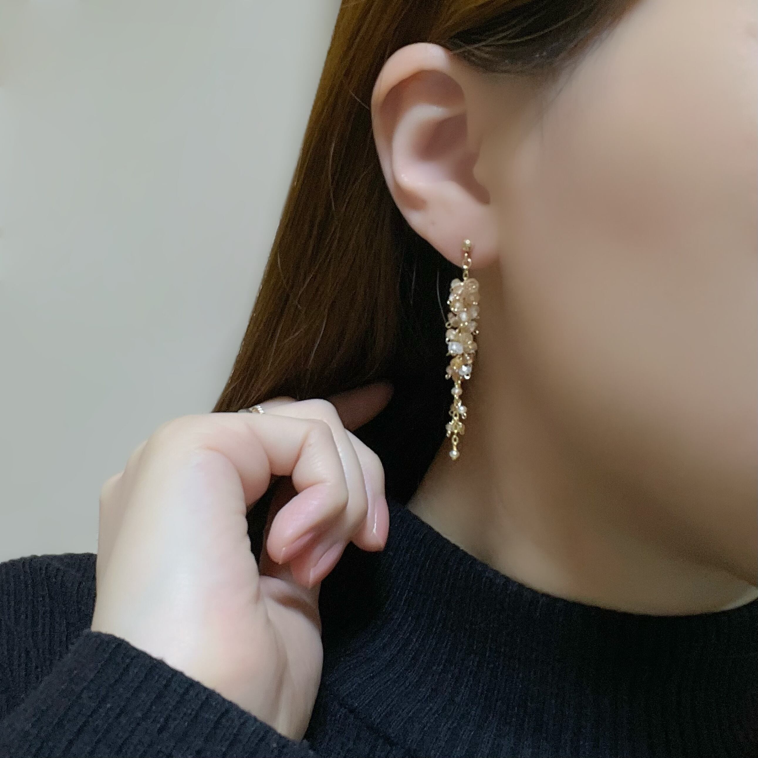 一粒一粒細かなカットが施されており、揺れる度にキラキラと華やかに煌めきます。