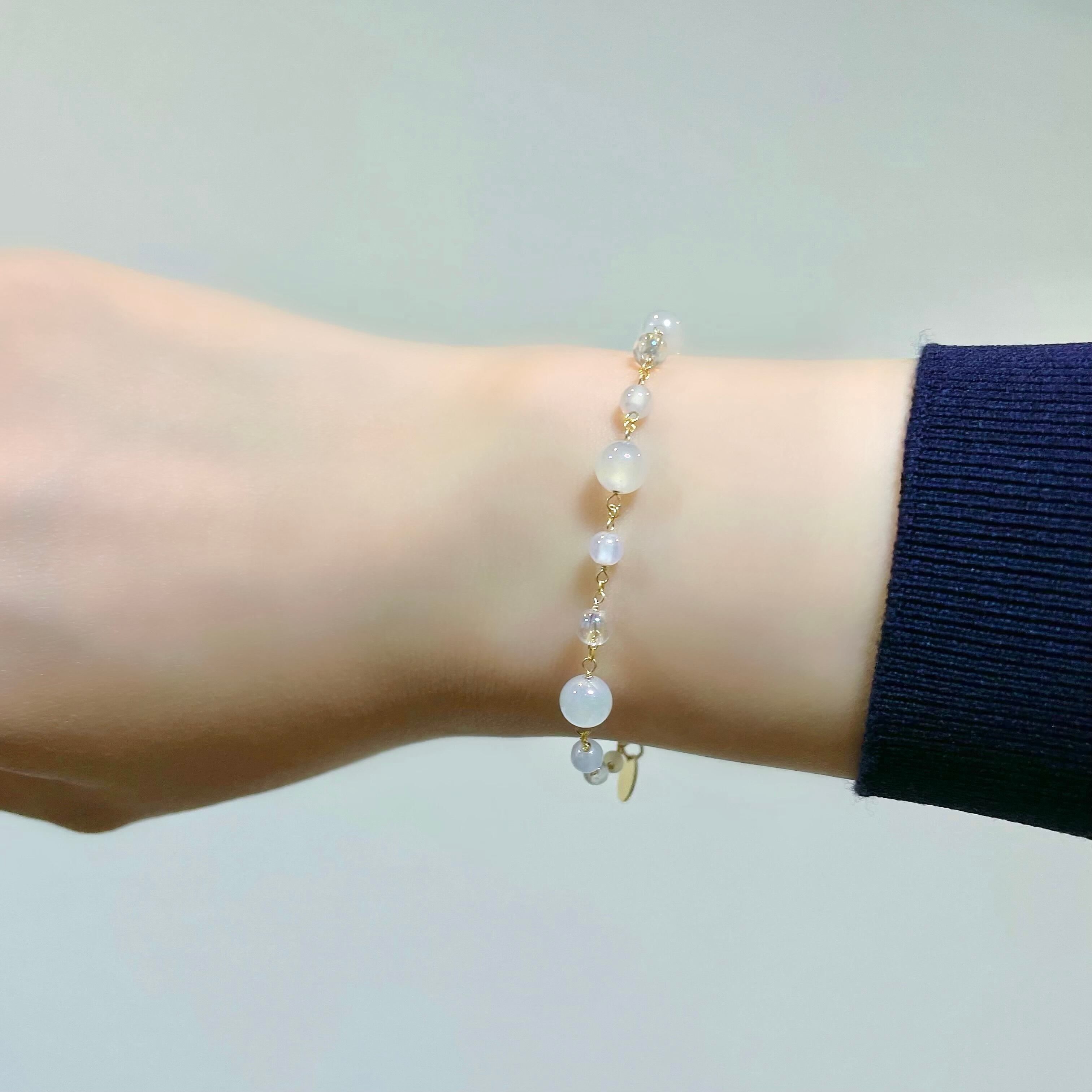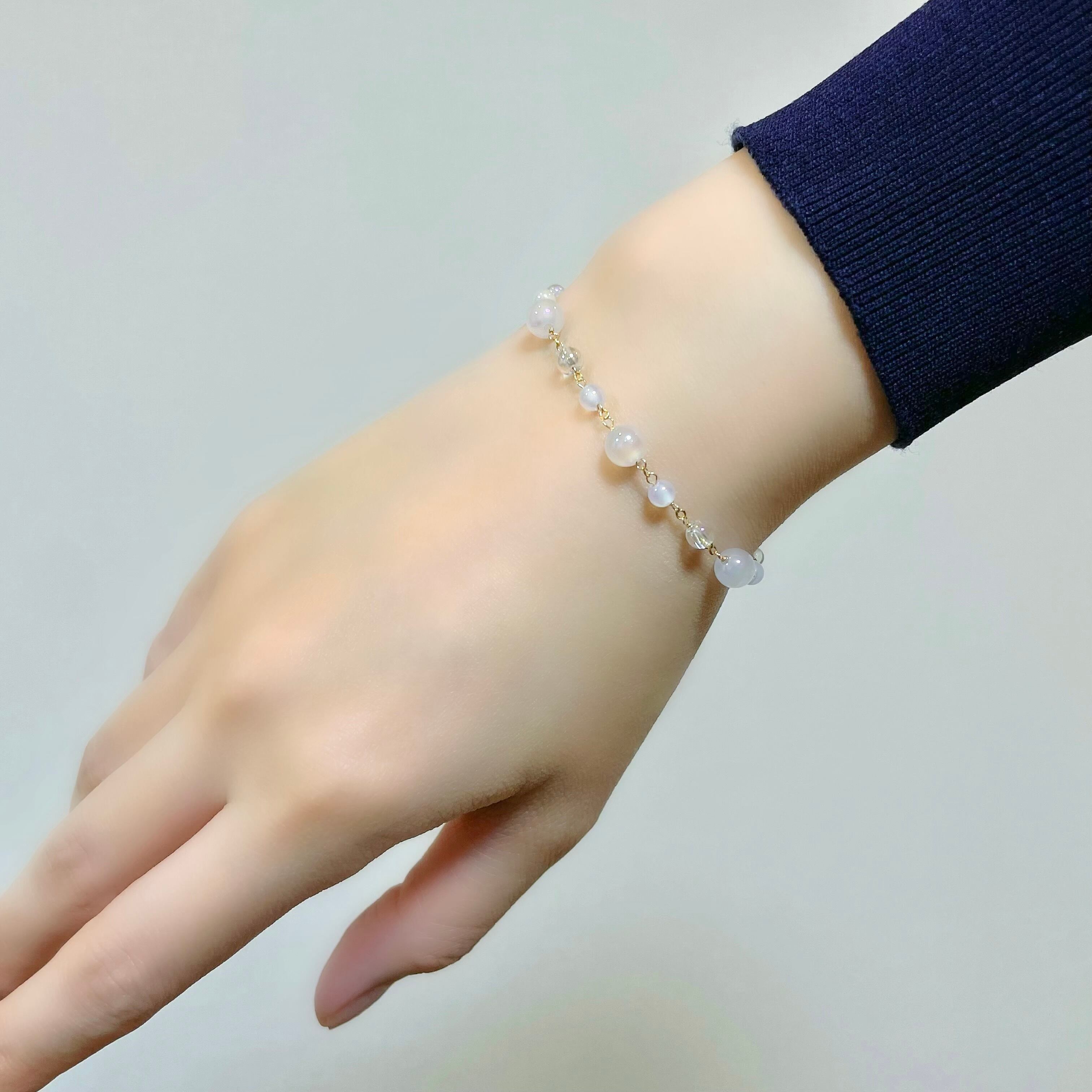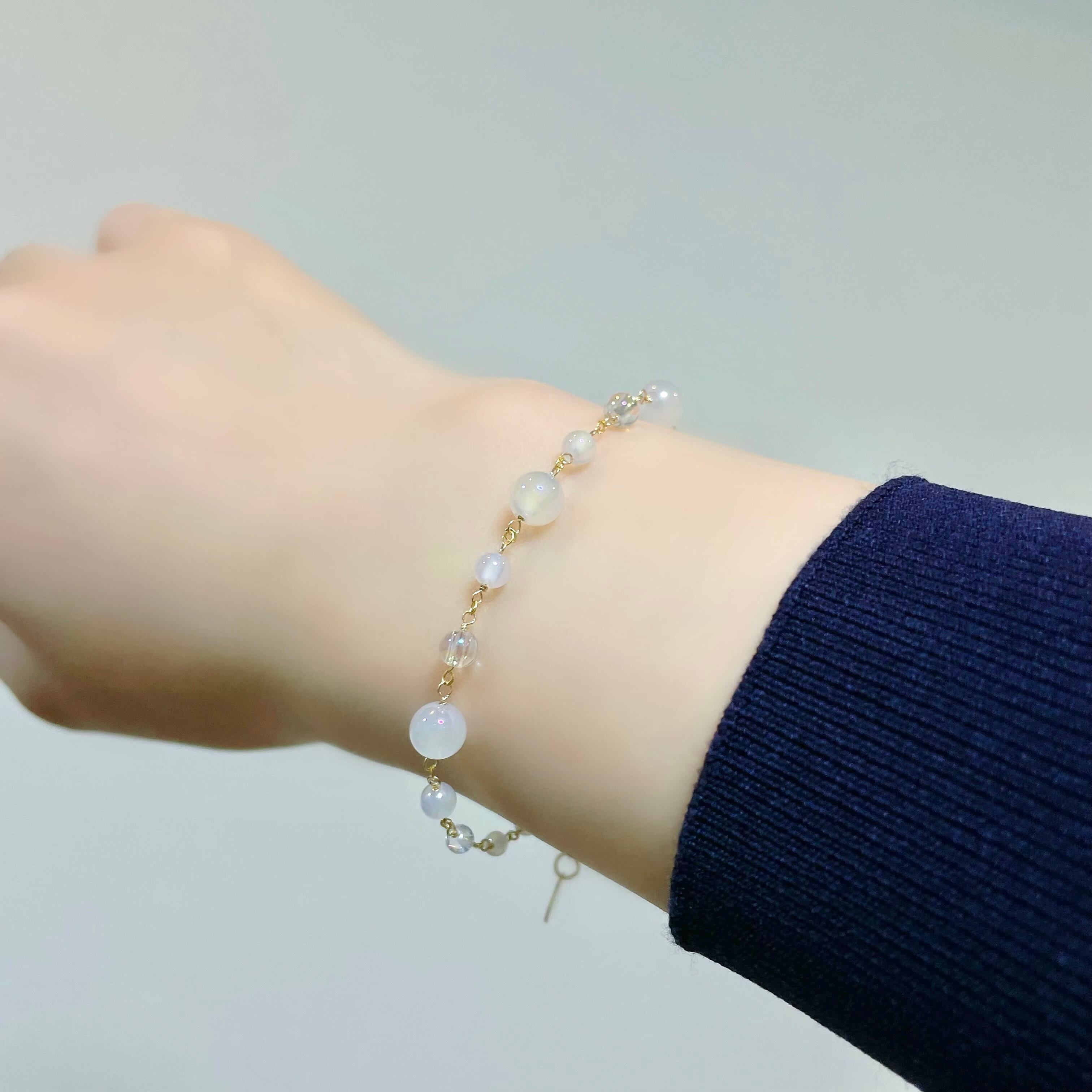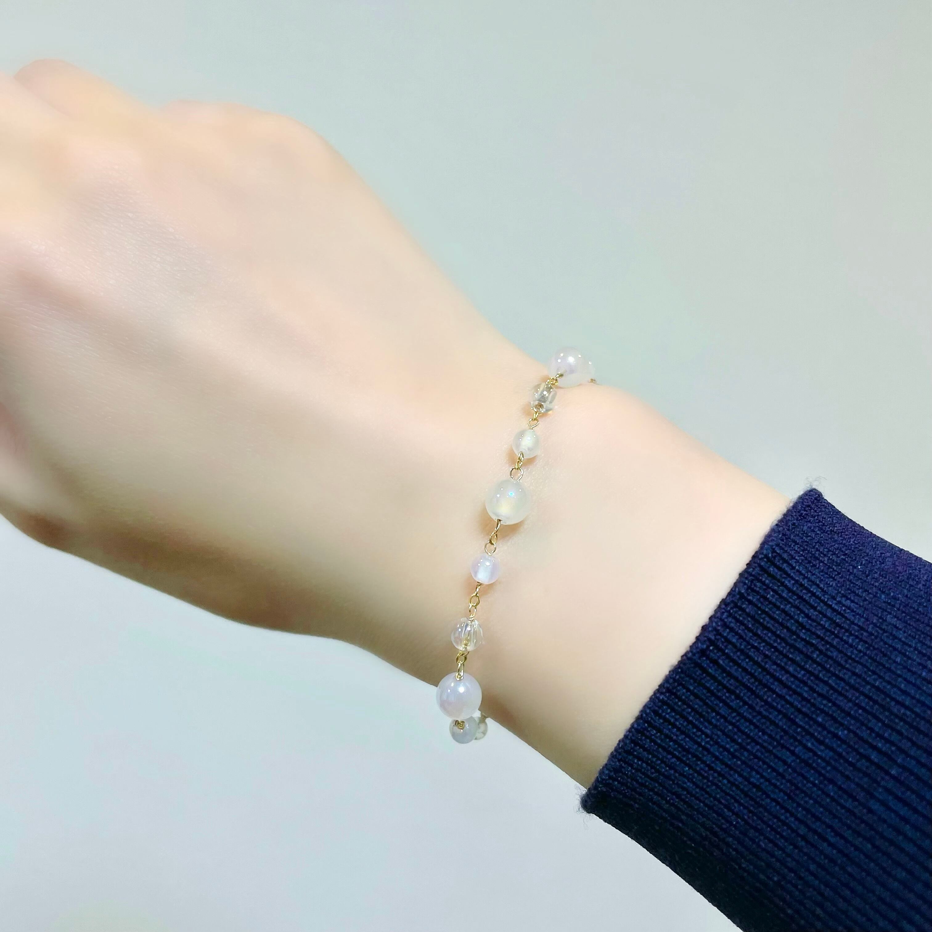 手元にやさしいきらめきを添え、軽やかにお楽しみいただけるブレスレットに仕上げました。