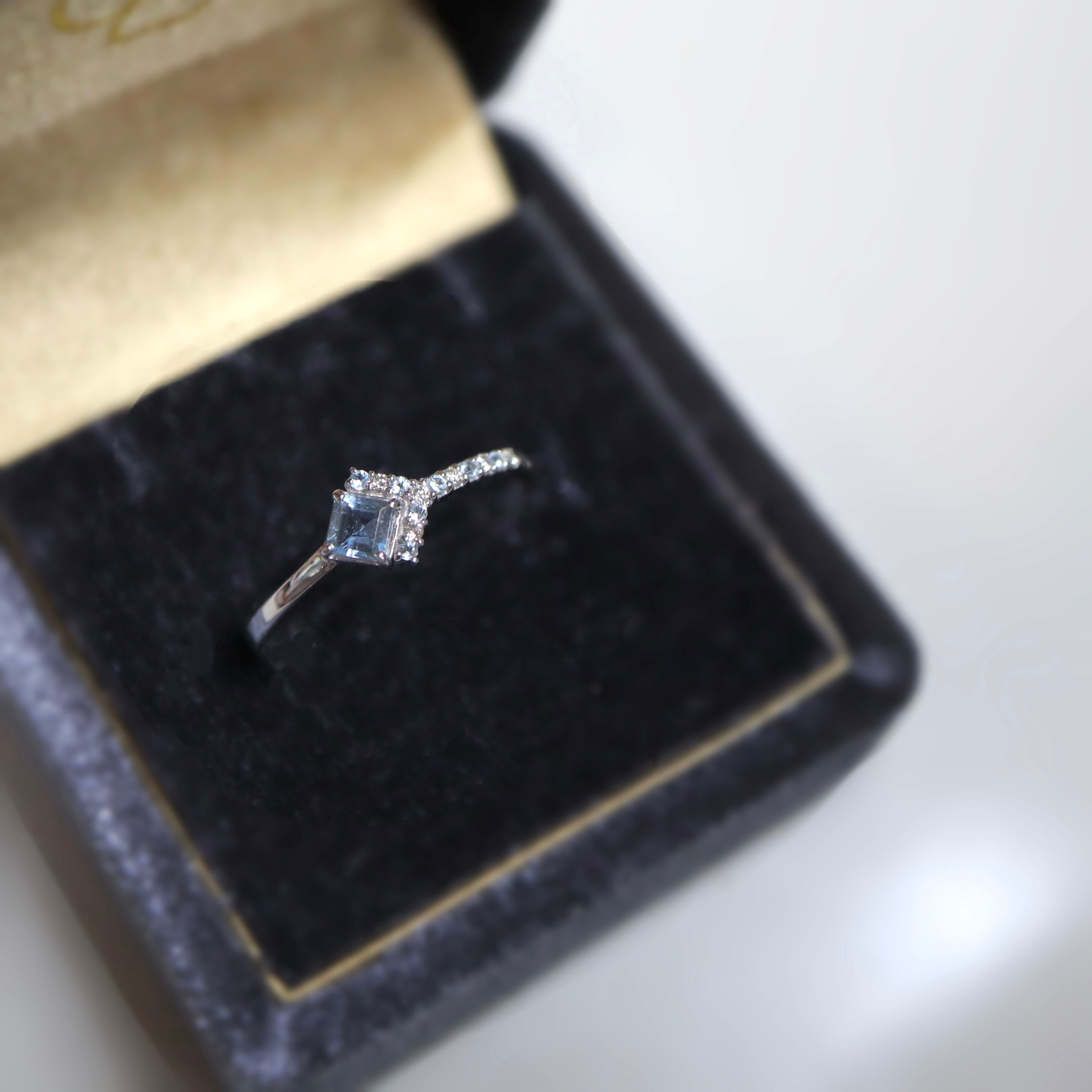 K10WG/Princess line ring(Santamaria aquamarine)